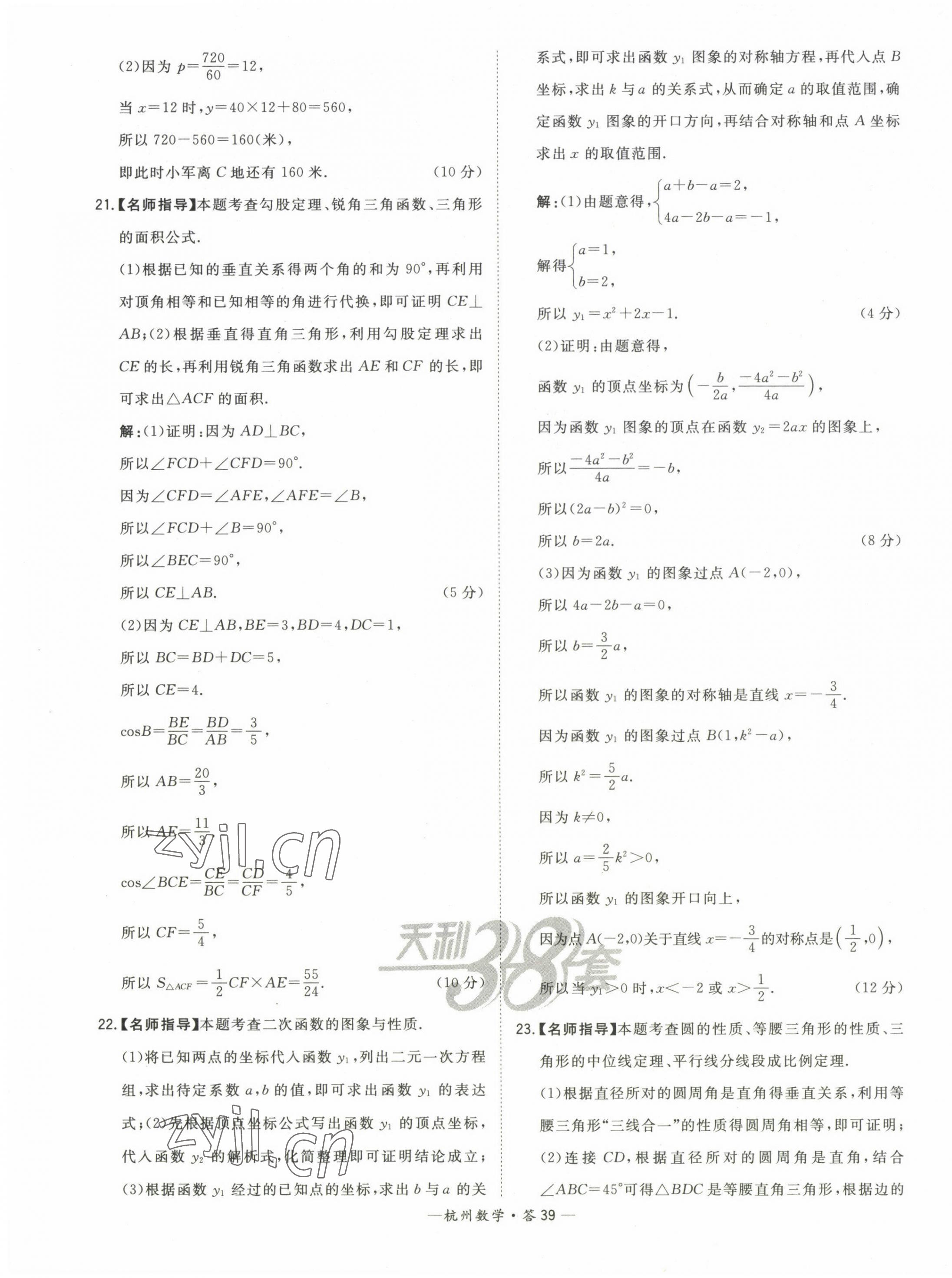 注:目前有些书本章节名称可能整理的还不是很完善,但都是按照顺序排列的,请同学们按照顺序仔细查找。练习册 2023年天利38套中考试题精选数学杭州专版 答案主要是用来给同学们做完题方便对答案用的,请勿直接抄袭。