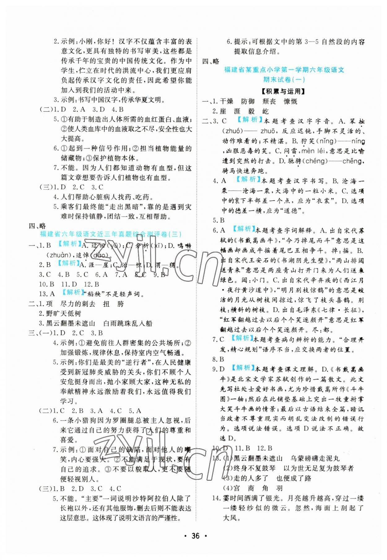注:目前有些书本章节名称可能整理的还不是很完善,但都是按照顺序排列的,请同学们按照顺序仔细查找。练习册 2022年期末大盘点六年级语文上册人教版福建专版 答案主要是用来给同学们做完题方便对答案用的,请勿直接抄袭。