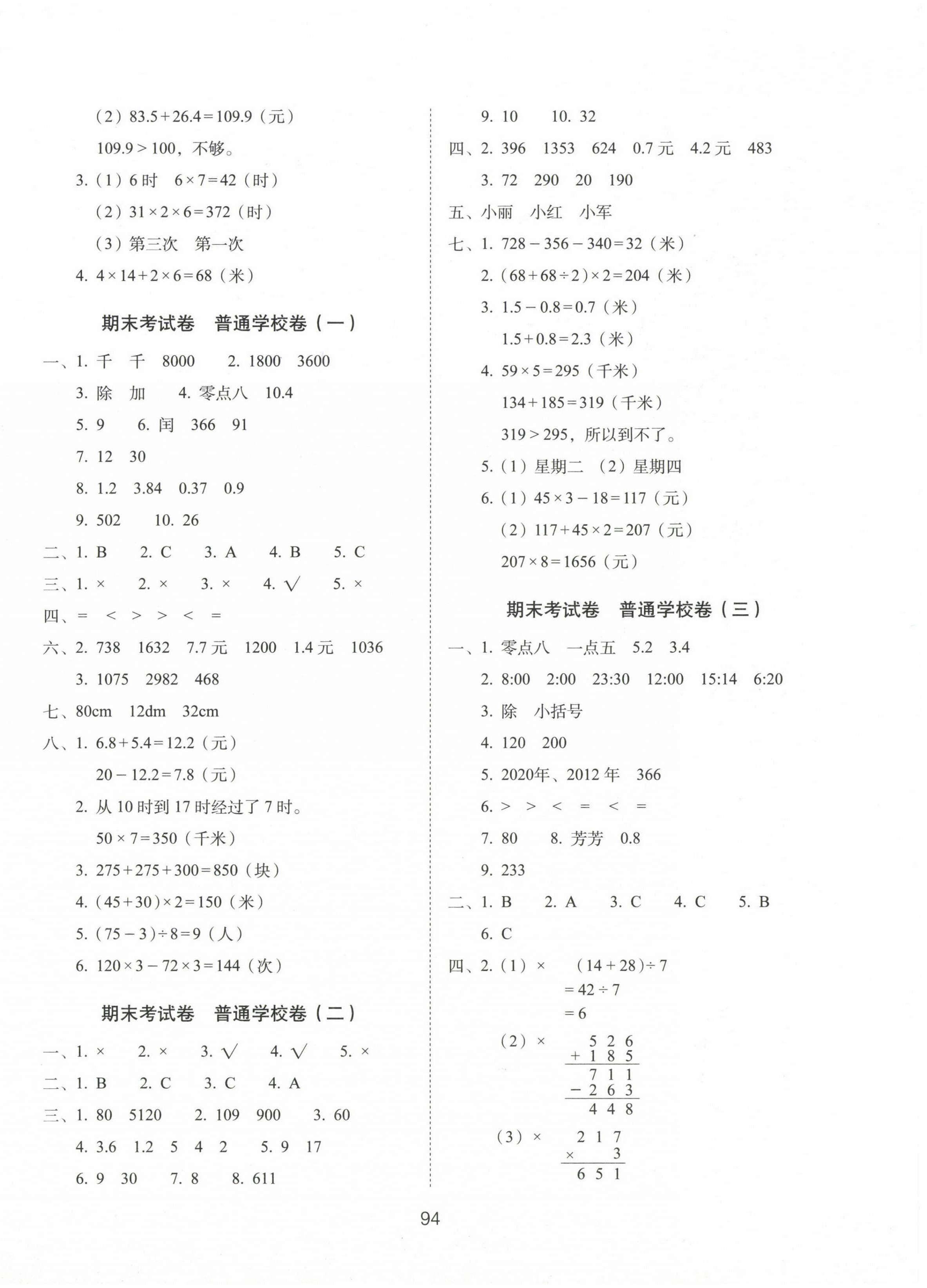 《2022年期末冲刺100分完全试卷三年级数学上册北师大版》