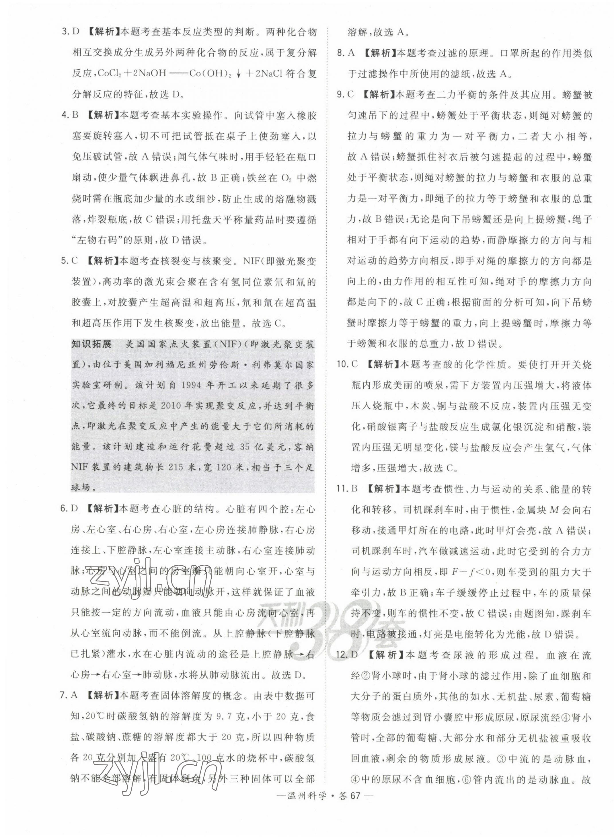 注:目前有些书本章节名称可能整理的还不是很完善,但都是按照顺序排列的,请同学们按照顺序仔细查找。练习册 2023年天利38套中考试题精选九年级科学温州专版 答案主要是用来给同学们做完题方便对答案用的,请勿直接抄袭。