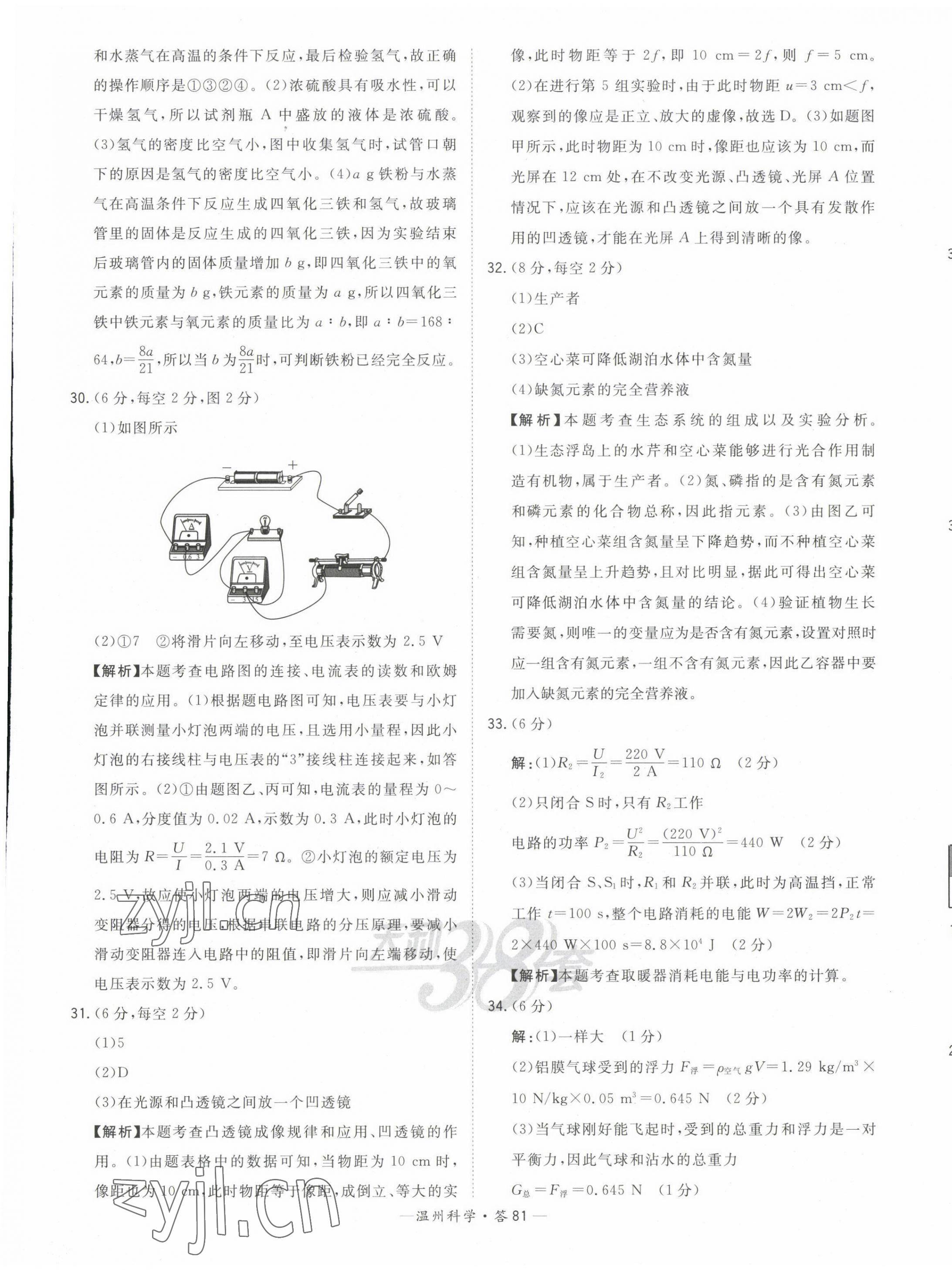2023年天利38套中考试题精选九年级科学温州专版