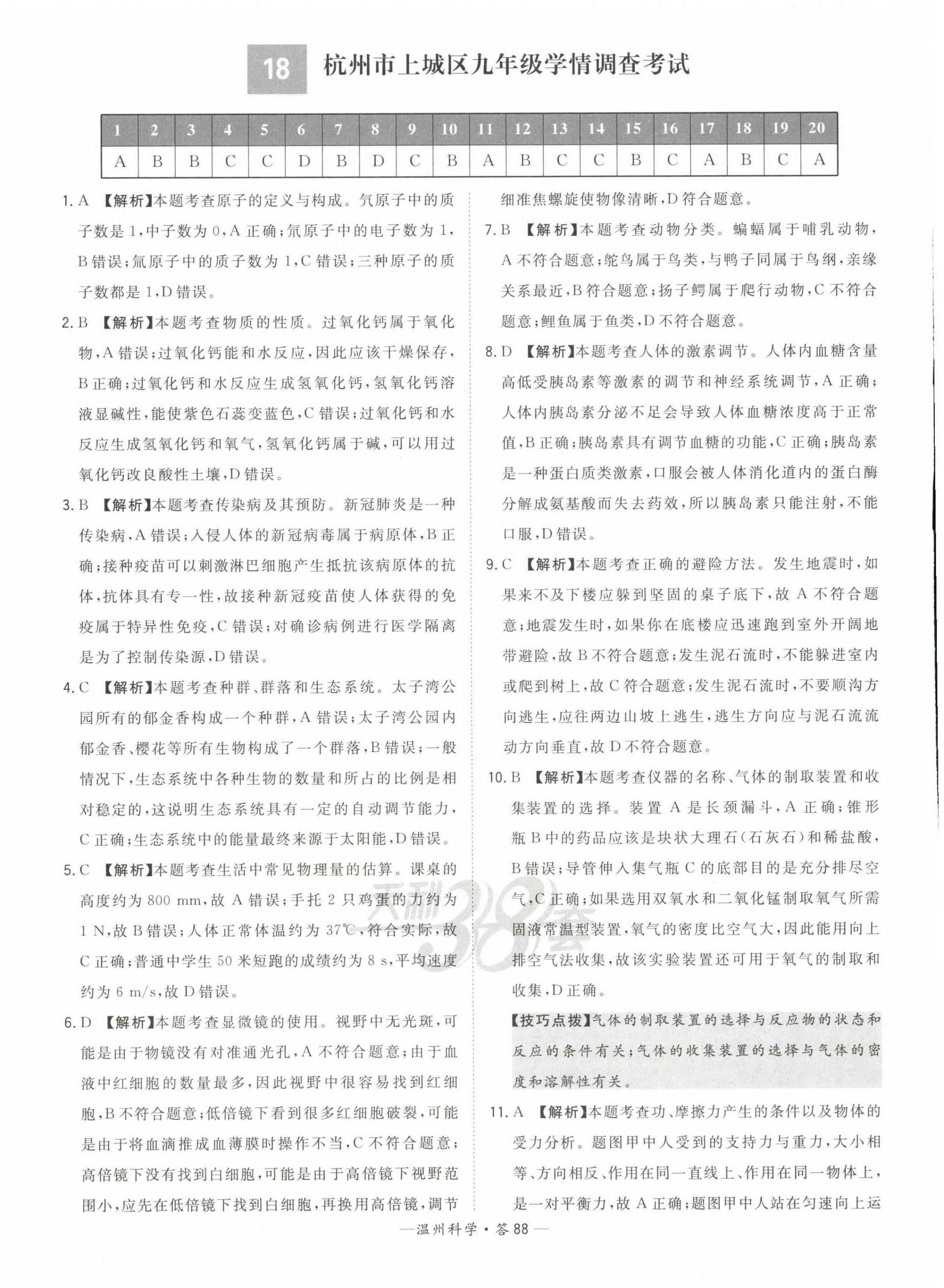 2023年天利38套中考试题精选九年级科学温州专版