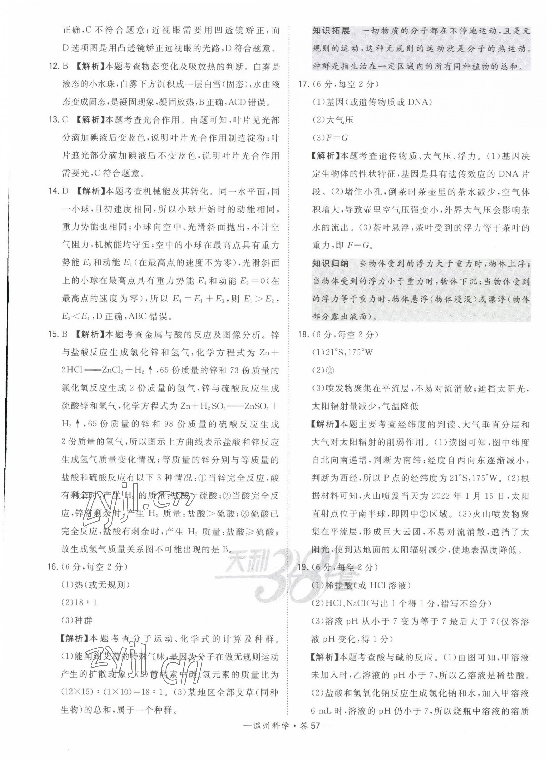 2023年天利38套中考试题精选九年级科学温州专版