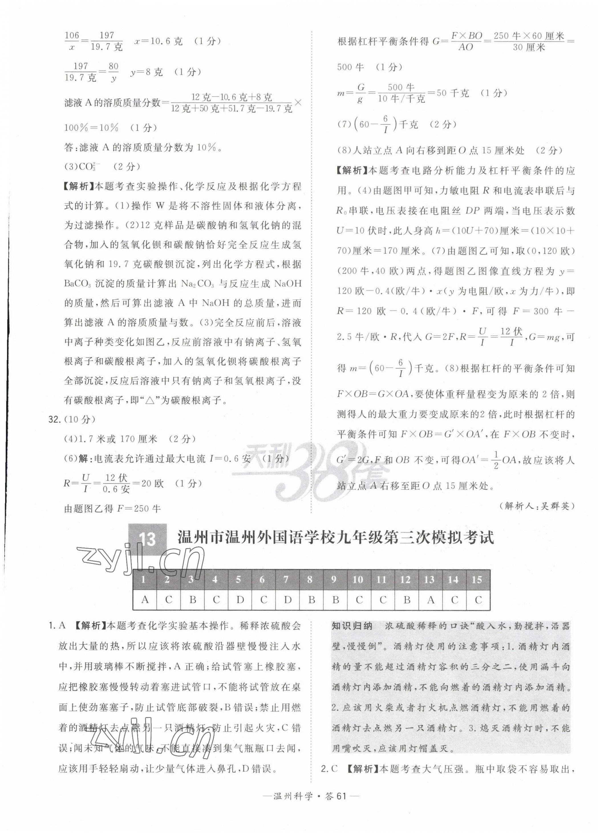 注:目前有些书本章节名称可能整理的还不是很完善,但都是按照顺序排列的,请同学们按照顺序仔细查找。练习册 2023年天利38套中考试题精选九年级科学温州专版 答案主要是用来给同学们做完题方便对答案用的,请勿直接抄袭。