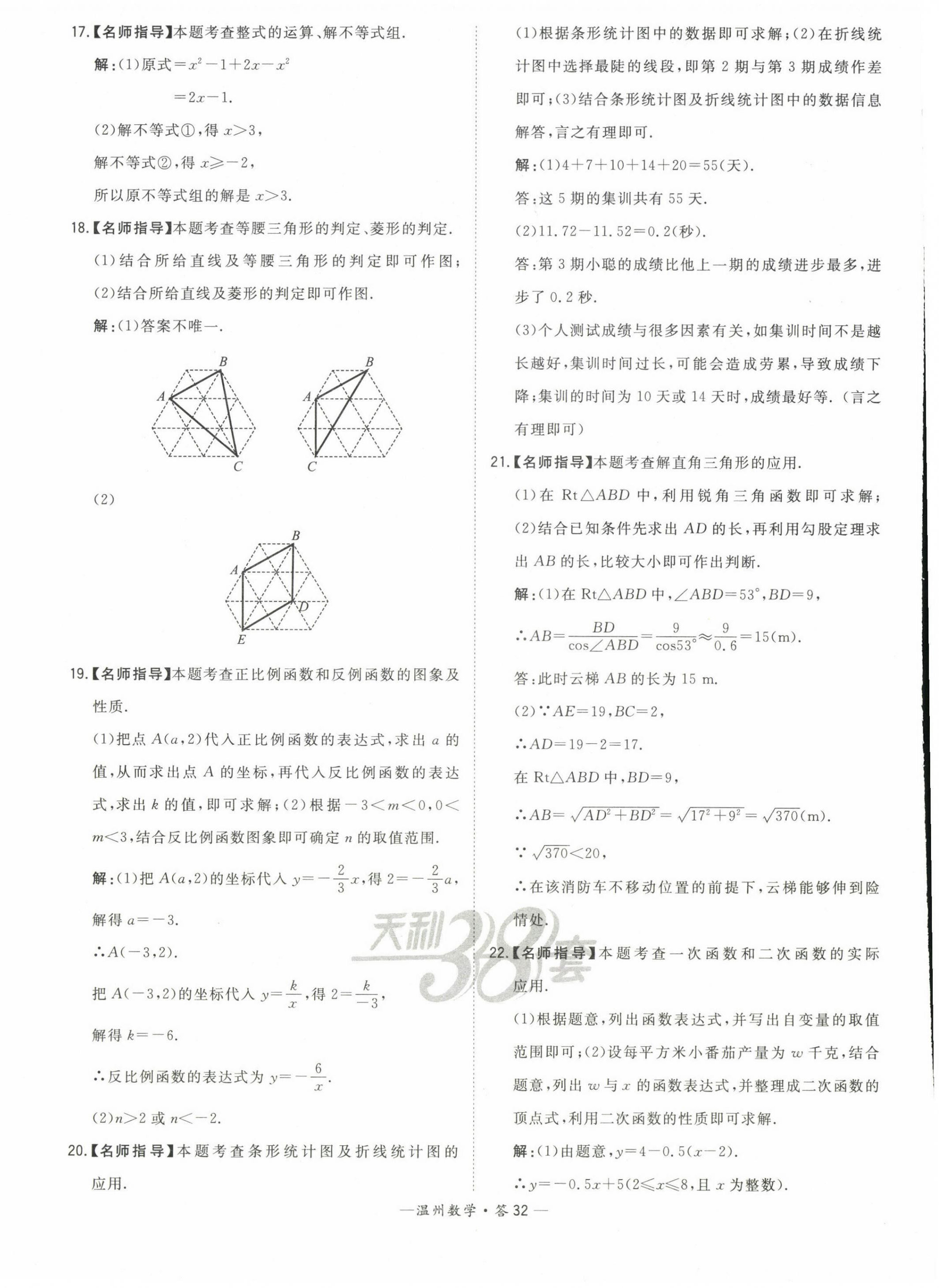 注:目前有些书本章节名称可能整理的还不是很完善,但都是按照顺序排列的,请同学们按照顺序仔细查找。练习册 2023年天利38套中考试题精选数学温州专版 答案主要是用来给同学们做完题方便对答案用的,请勿直接抄袭。