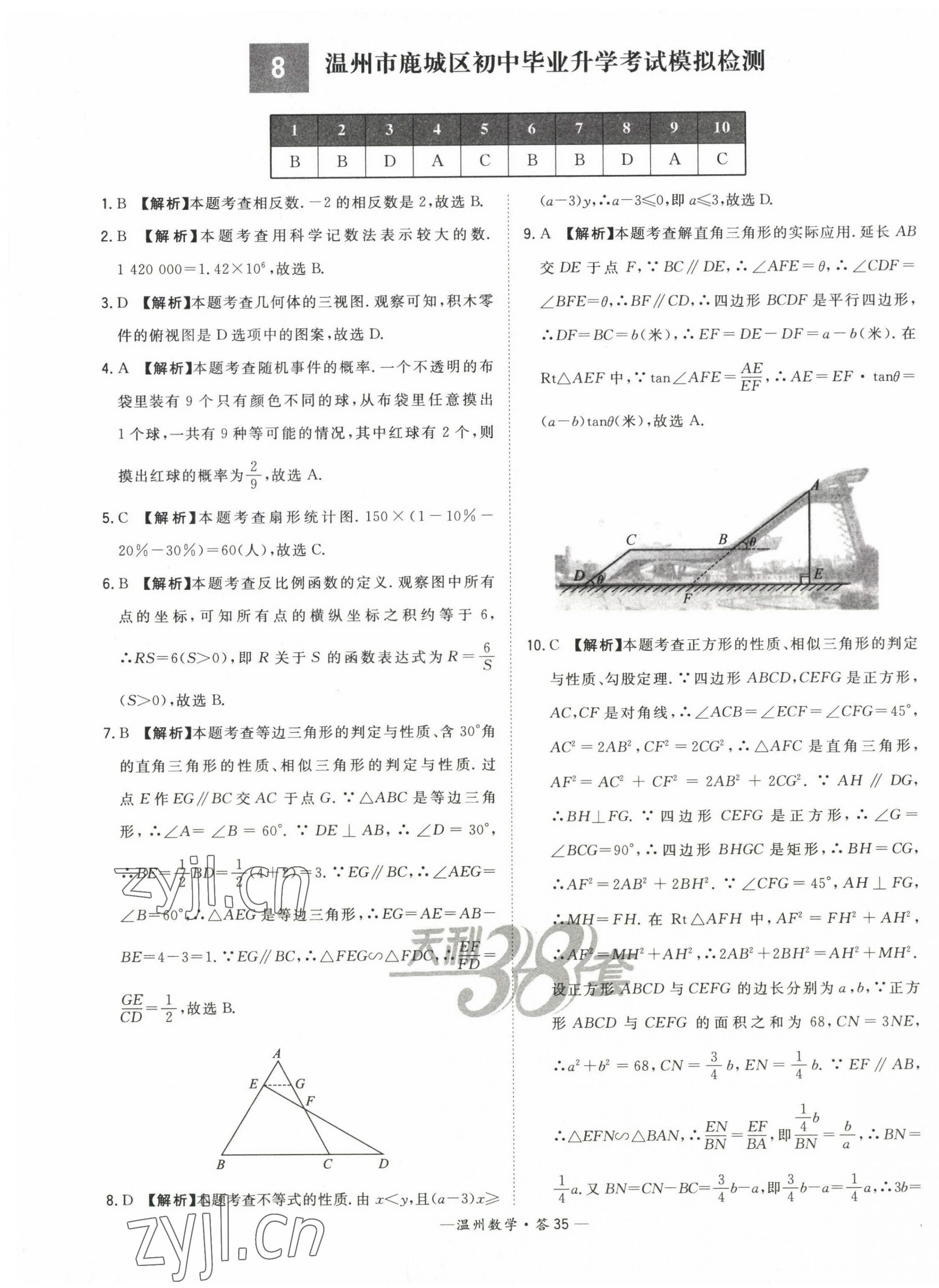 注:目前有些书本章节名称可能整理的还不是很完善,但都是按照顺序排列的,请同学们按照顺序仔细查找。练习册 2023年天利38套中考试题精选数学温州专版 答案主要是用来给同学们做完题方便对答案用的,请勿直接抄袭。