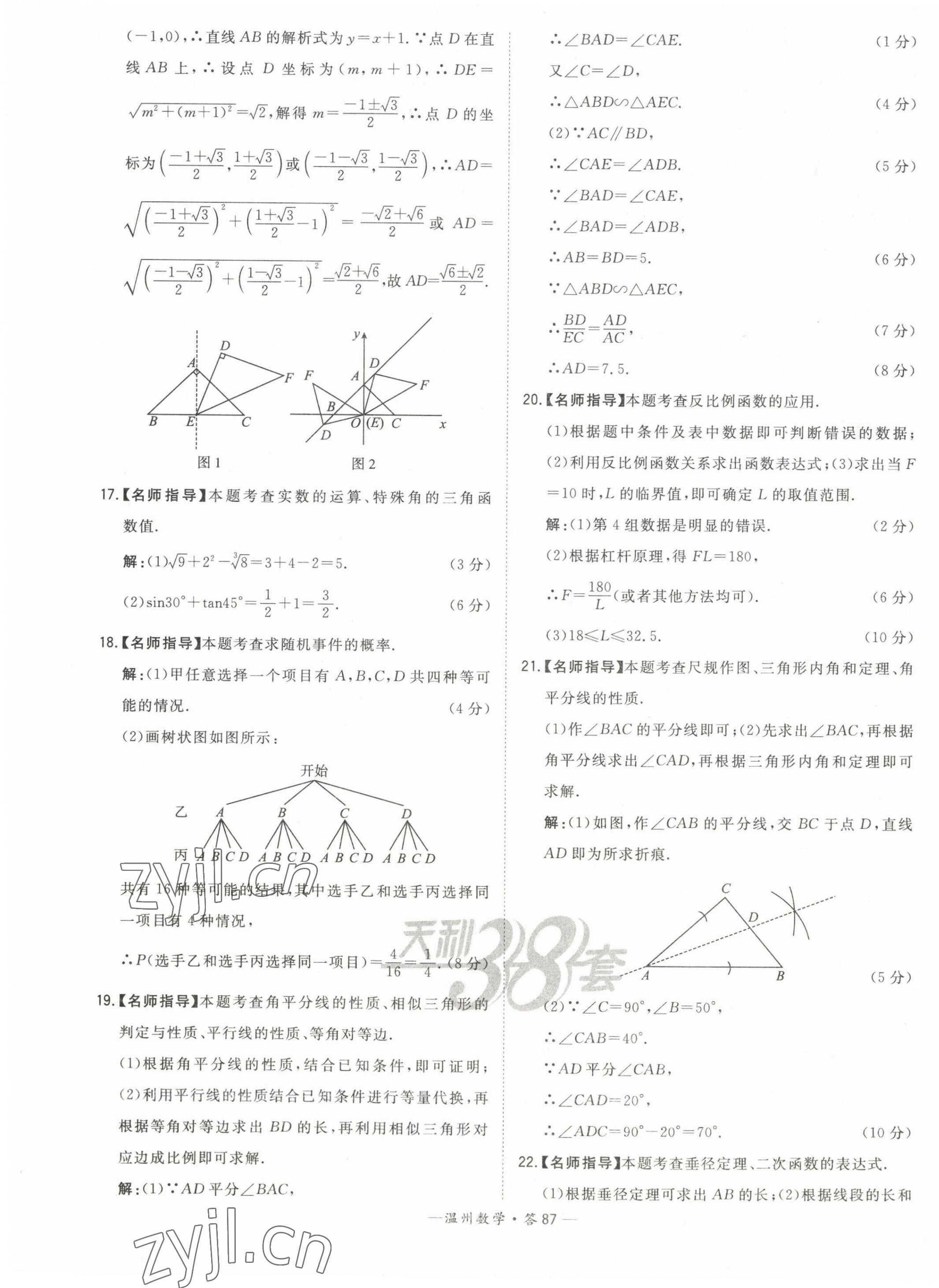注:目前有些书本章节名称可能整理的还不是很完善,但都是按照顺序排列的,请同学们按照顺序仔细查找。练习册 2023年天利38套中考试题精选数学温州专版 答案主要是用来给同学们做完题方便对答案用的,请勿直接抄袭。