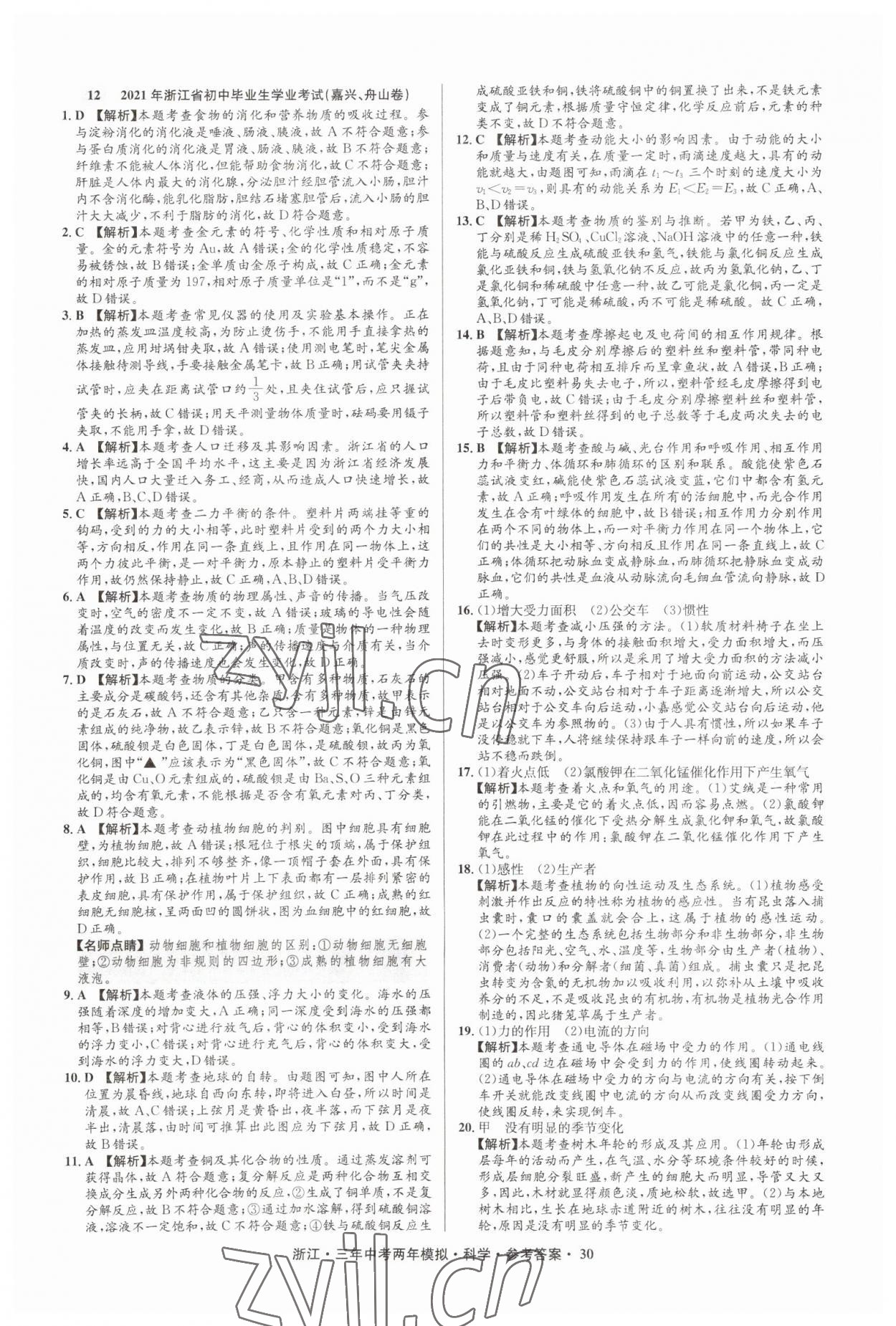 注:目前有些书本章节名称可能整理的还不是很完善,但都是按照顺序排列的,请同学们按照顺序仔细查找。练习册 2023年3年中考2年模拟直通中考科学浙江专用 答案主要是用来给同学们做完题方便对答案用的,请勿直接抄袭。