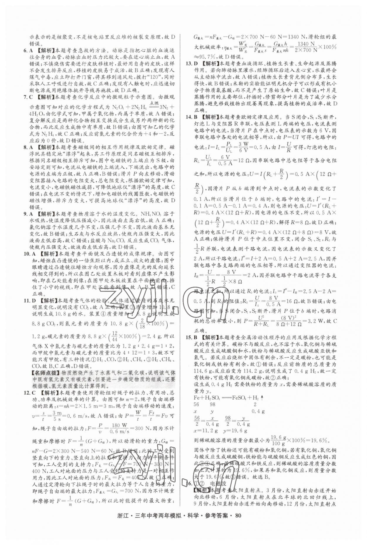 2023年3年中考2年模拟直通中考科学浙江专用