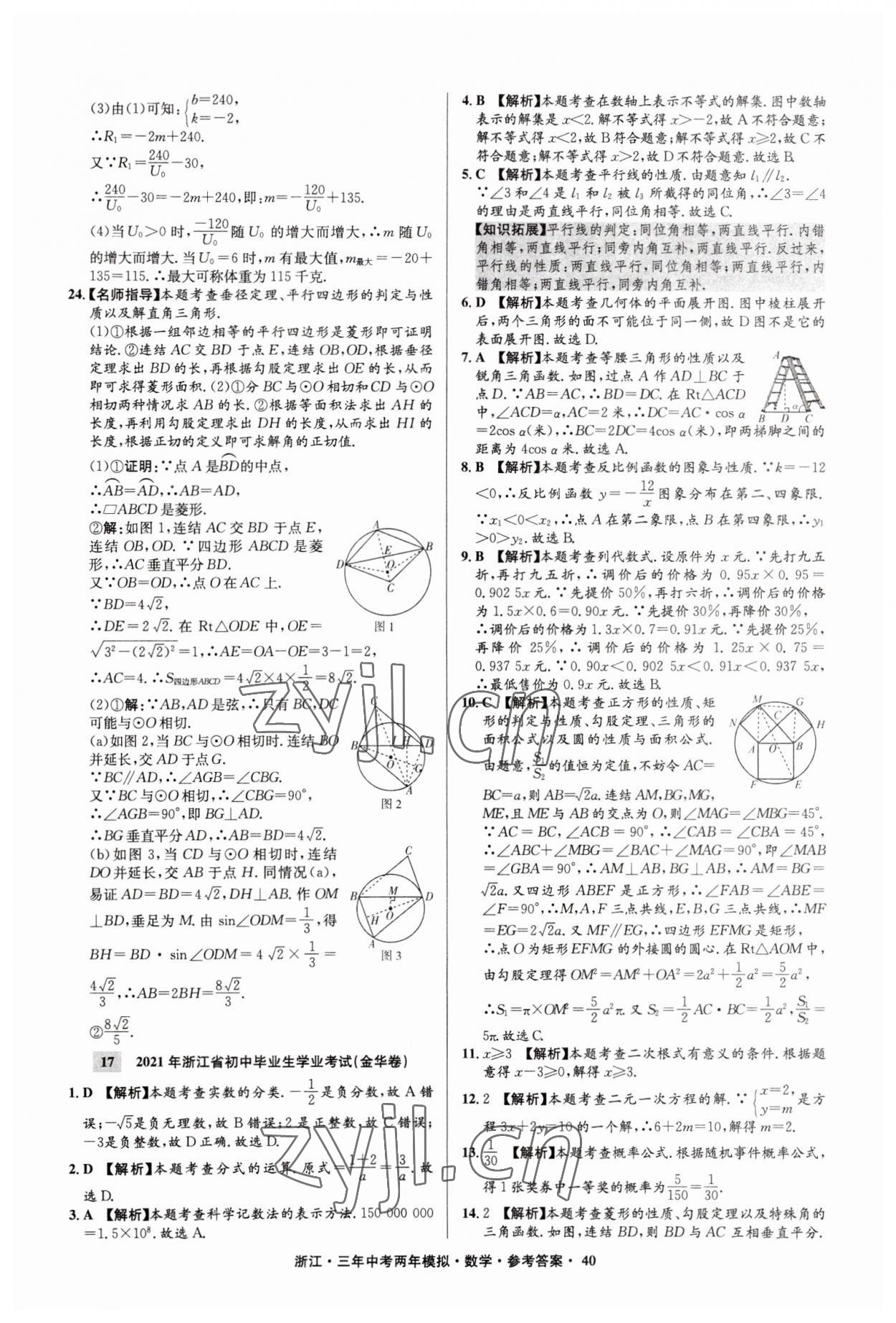 2023年3年中考2年模拟数学浙江专版