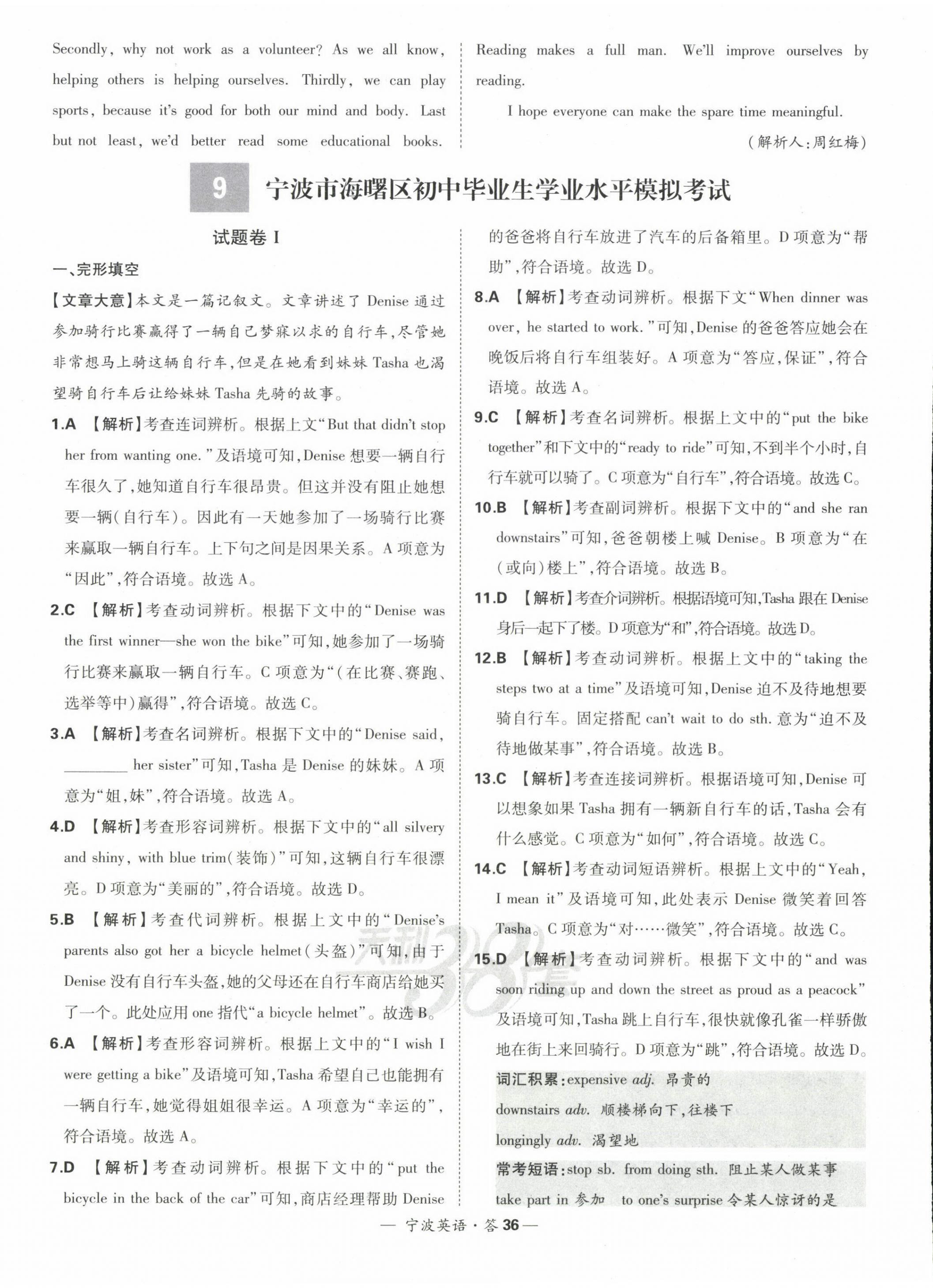 注:目前有些书本章节名称可能整理的还不是很完善,但都是按照顺序排列的,请同学们按照顺序仔细查找。练习册 2023年天利38套中考试题精选英语宁波专版 答案主要是用来给同学们做完题方便对答案用的,请勿直接抄袭。