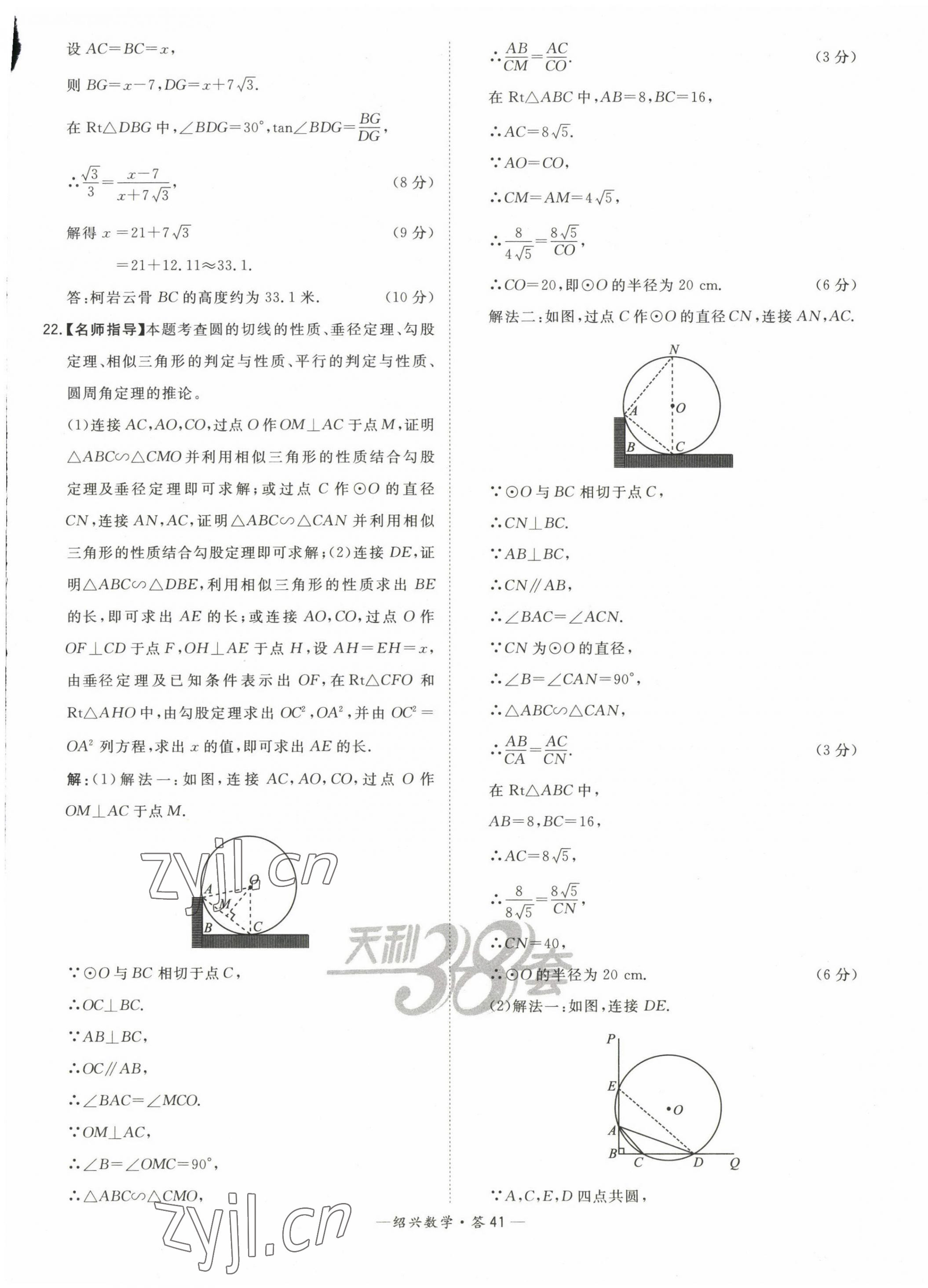 2023年天利38套中考试题精选数学绍兴专版