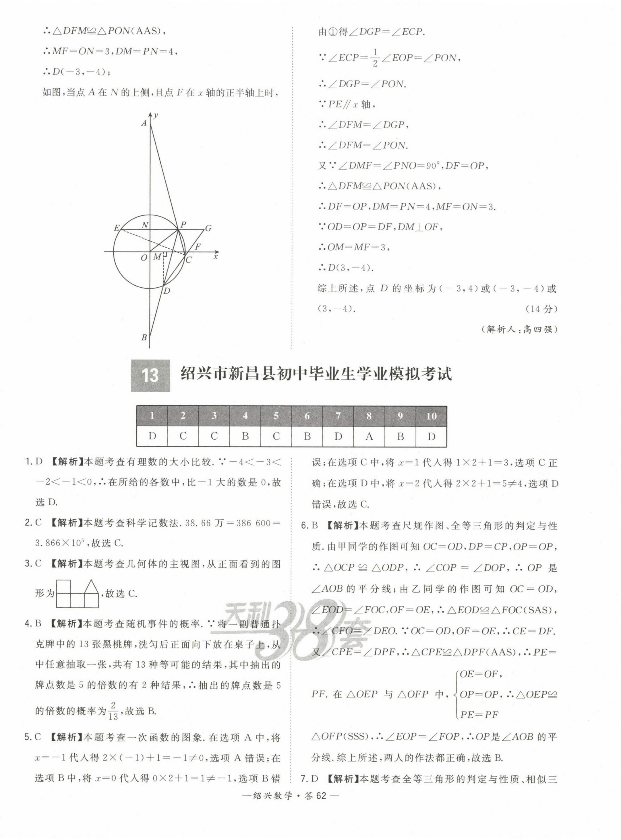 2023年天利38套中考试题精选数学绍兴专版