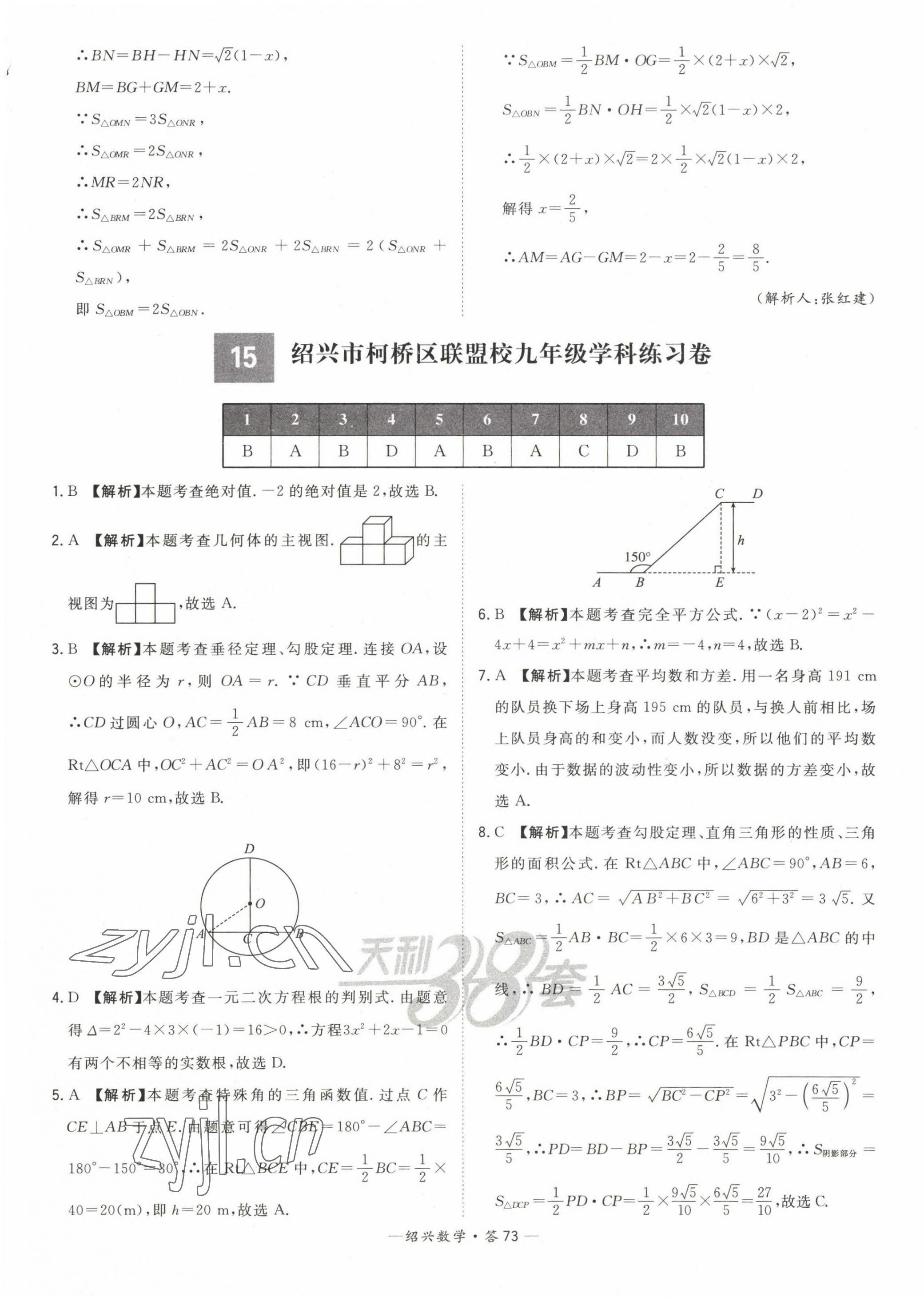 2023年天利38套中考试题精选数学绍兴专版