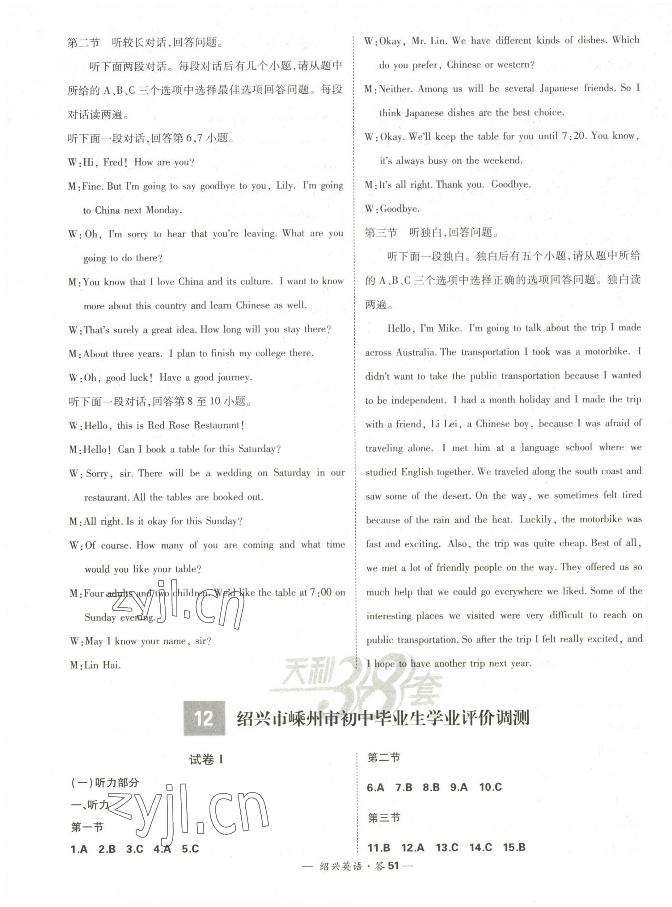 注:目前有些书本章节名称可能整理的还不是很完善,但都是按照顺序排列的,请同学们按照顺序仔细查找。练习册 2023年天利38套中考试题精选英语绍兴专版 答案主要是用来给同学们做完题方便对答案用的,请勿直接抄袭。