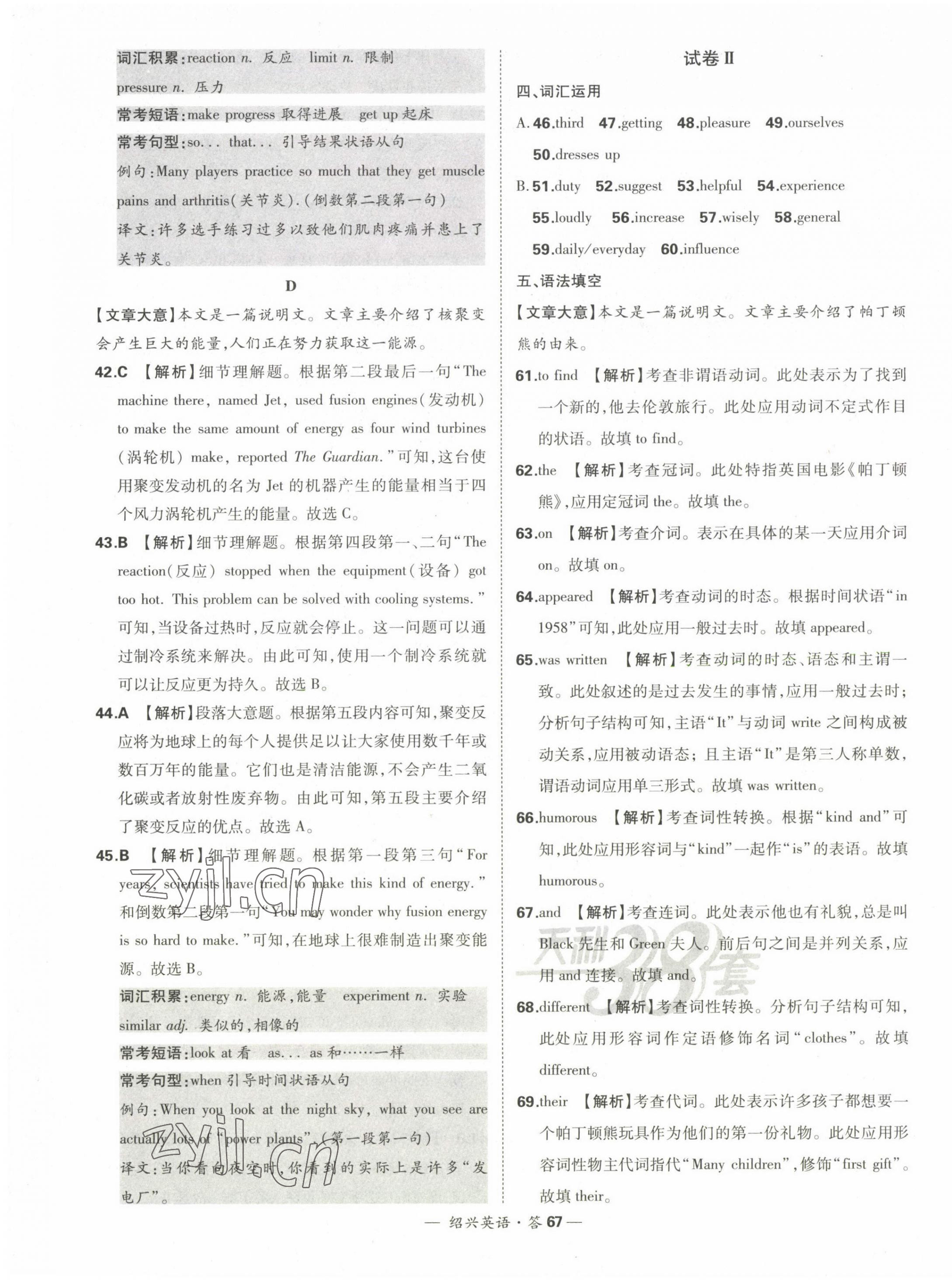 注:目前有些书本章节名称可能整理的还不是很完善,但都是按照顺序排列的,请同学们按照顺序仔细查找。练习册 2023年天利38套中考试题精选英语绍兴专版 答案主要是用来给同学们做完题方便对答案用的,请勿直接抄袭。