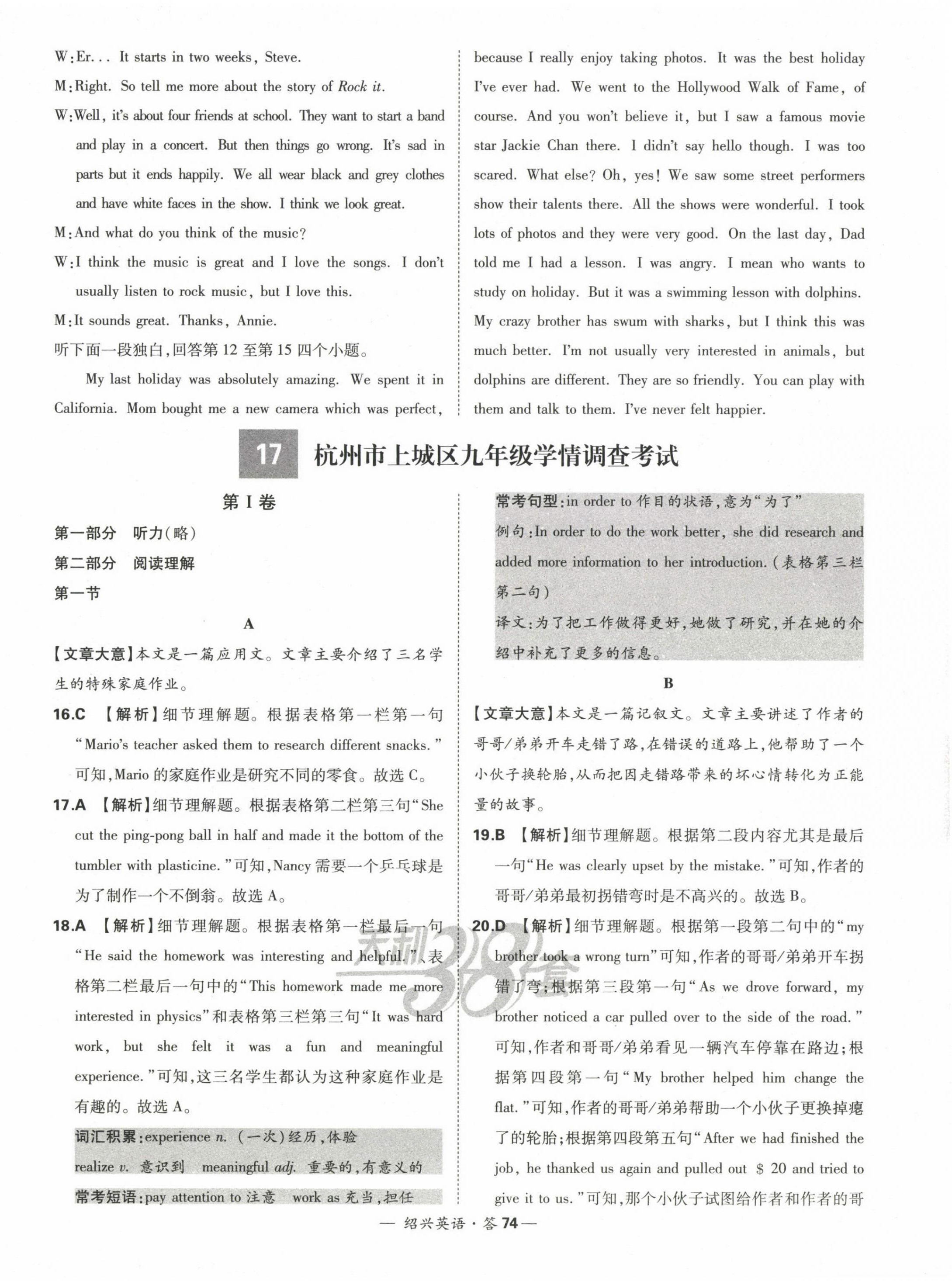 注:目前有些书本章节名称可能整理的还不是很完善,但都是按照顺序排列的,请同学们按照顺序仔细查找。练习册 2023年天利38套中考试题精选英语绍兴专版 答案主要是用来给同学们做完题方便对答案用的,请勿直接抄袭。