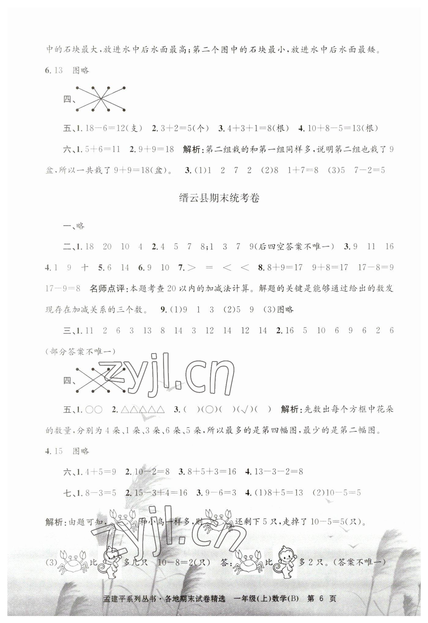 注:目前有些书本章节名称可能整理的还不是很完善,但都是按照顺序排列的,请同学们按照顺序仔细查找。练习册 2022年孟建平各地期末试卷精选一年级数学上册北师大版 答案主要是用来给同学们做完题方便对答案用的,请勿直接抄袭。
