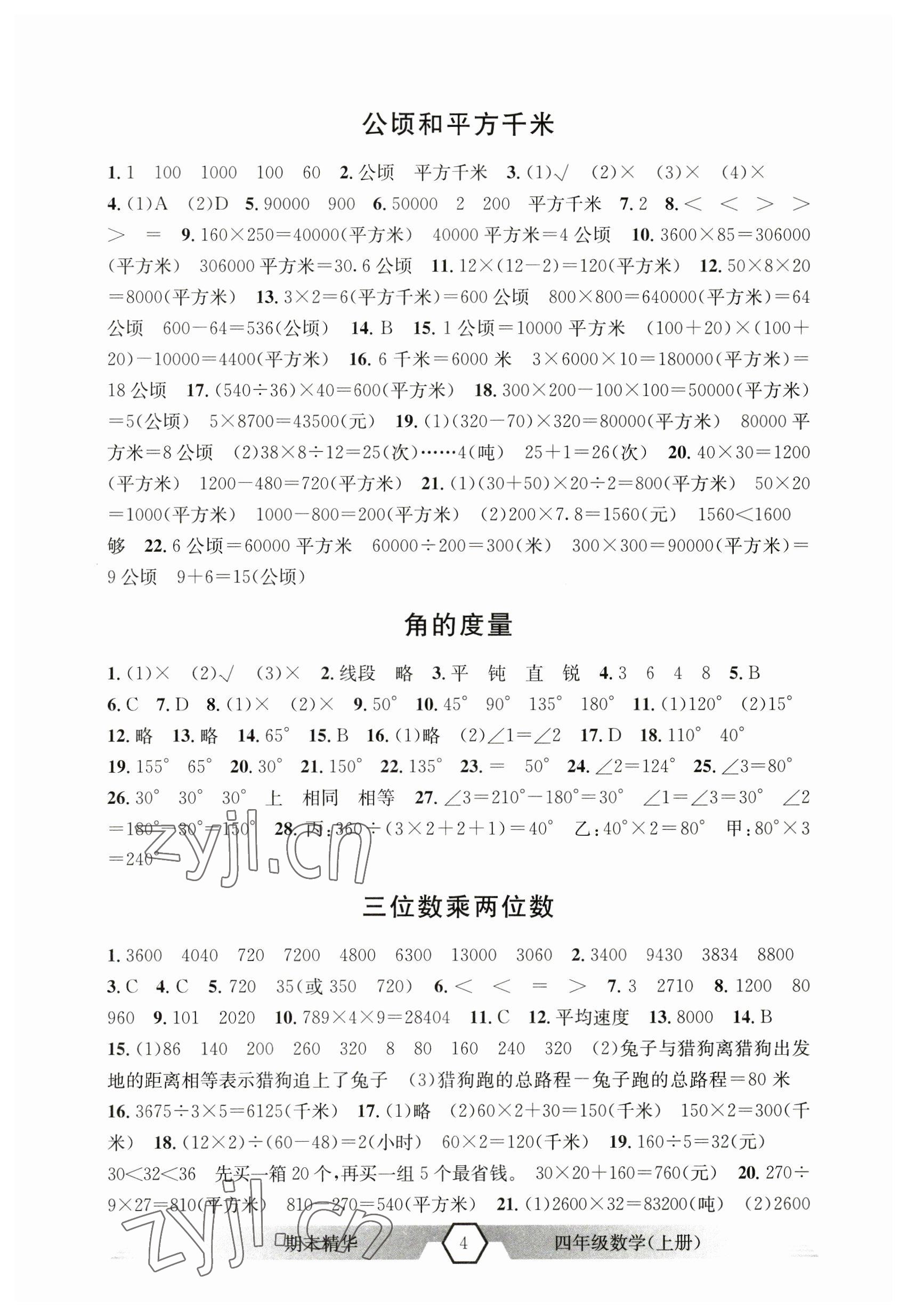 注:目前有些书本章节名称可能整理的还不是很完善,但都是按照顺序排列的,请同学们按照顺序仔细查找。练习册 2022年期末精华四年级数学上册人教版 答案主要是用来给同学们做完题方便对答案用的,请勿直接抄袭。