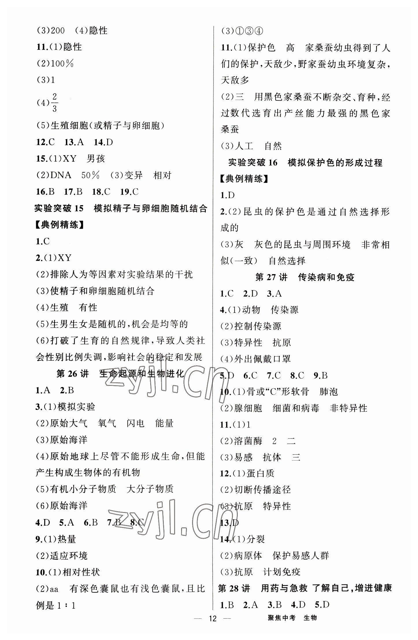 注:目前有些书本章节名称可能整理的还不是很完善,但都是按照顺序排列的,请同学们按照顺序仔细查找。练习册 2023年聚焦中考生物中考 答案主要是用来给同学们做完题方便对答案用的,请勿直接抄袭。