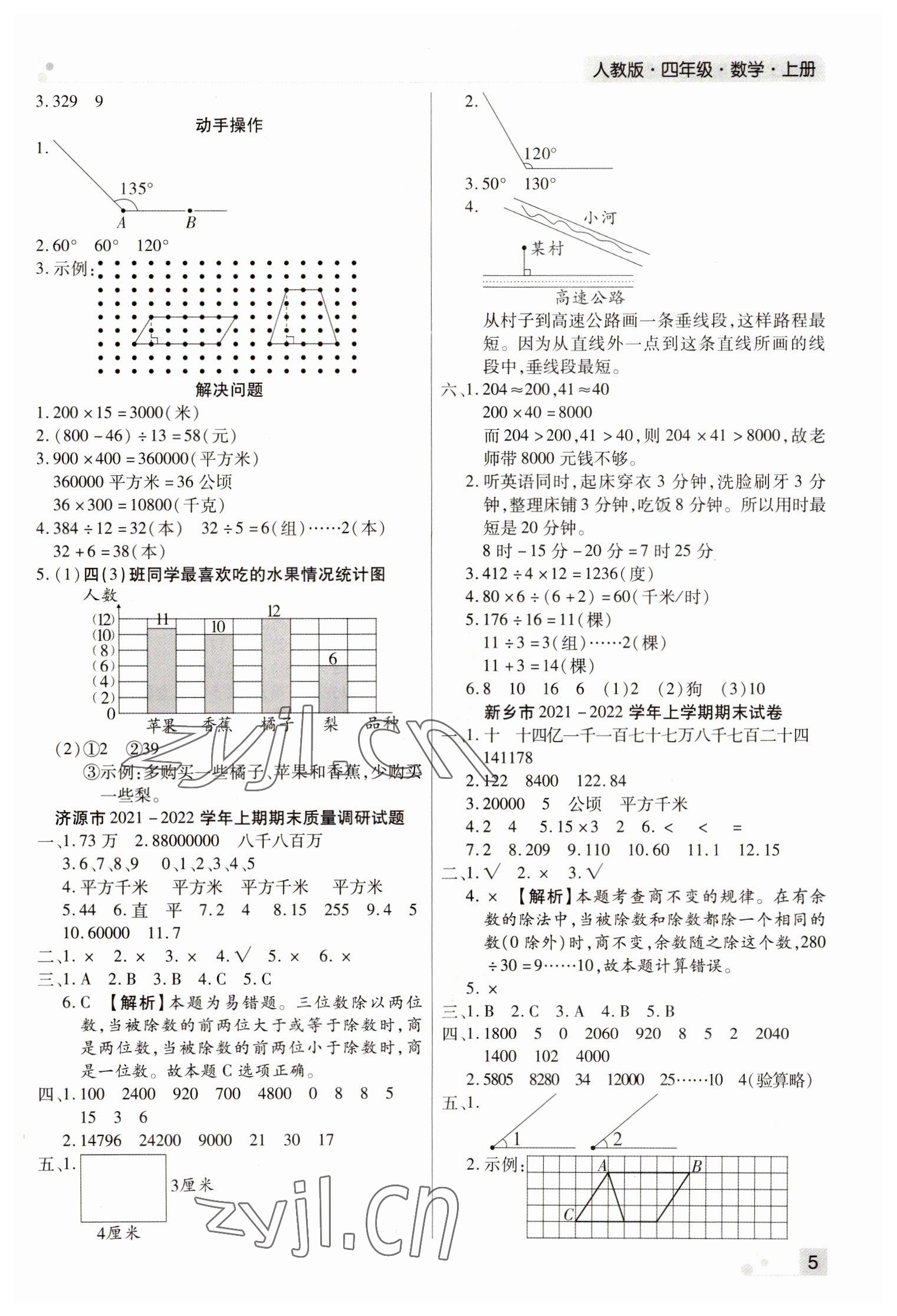 注:目前有些书本章节名称可能整理的还不是很完善,但都是按照顺序排列的,请同学们按照顺序仔细查找。练习册 2022年期末考试必刷卷四年级数学上册人教版河南专版 答案主要是用来给同学们做完题方便对答案用的,请勿直接抄袭。