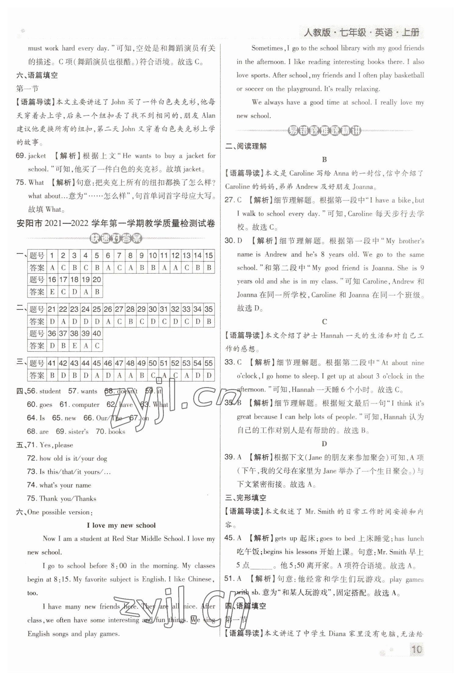 注:目前有些书本章节名称可能整理的还不是很完善,但都是按照顺序排列的,请同学们按照顺序仔细查找。练习册 2022年期末考试必刷卷七年级英语上册人教版河南专版 答案主要是用来给同学们做完题方便对答案用的,请勿直接抄袭。