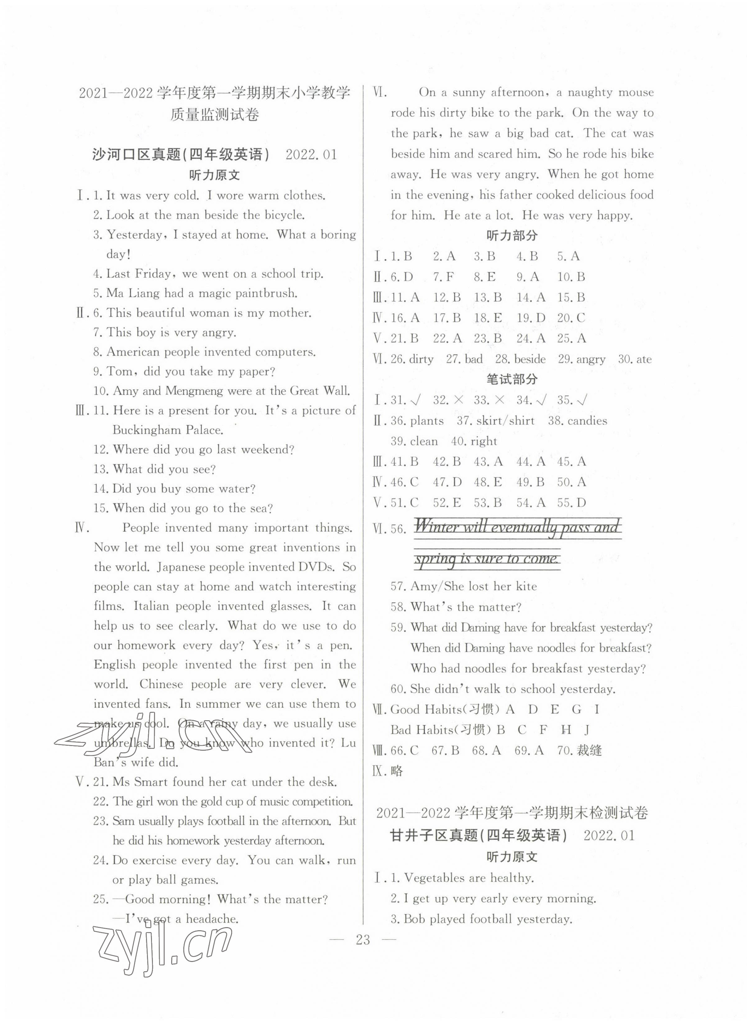 注:目前有些书本章节名称可能整理的还不是很完善,但都是按照顺序排列的,请同学们按照顺序仔细查找。练习册 2022年大连金牌期末模拟试卷四年级英语上册外研版 答案主要是用来给同学们做完题方便对答案用的,请勿直接抄袭。