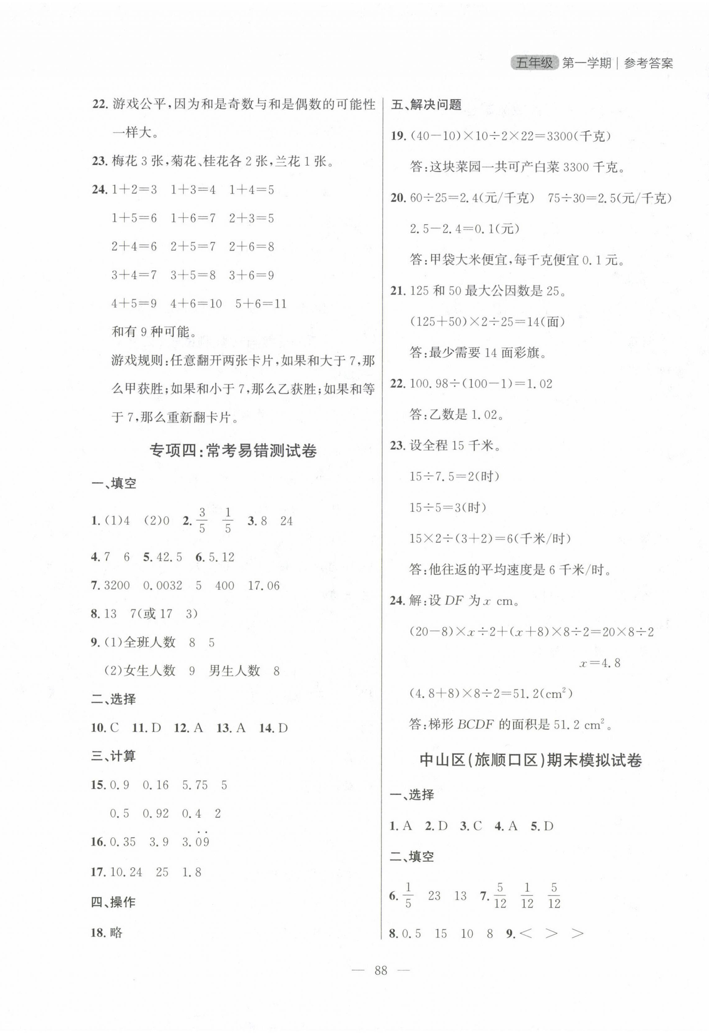 注:目前有些书本章节名称可能整理的还不是很完善,但都是按照顺序排列的,请同学们按照顺序仔细查找。练习册 2022年大连金牌期末模拟试卷五年级数学上册北师大版 答案主要是用来给同学们做完题方便对答案用的,请勿直接抄袭。