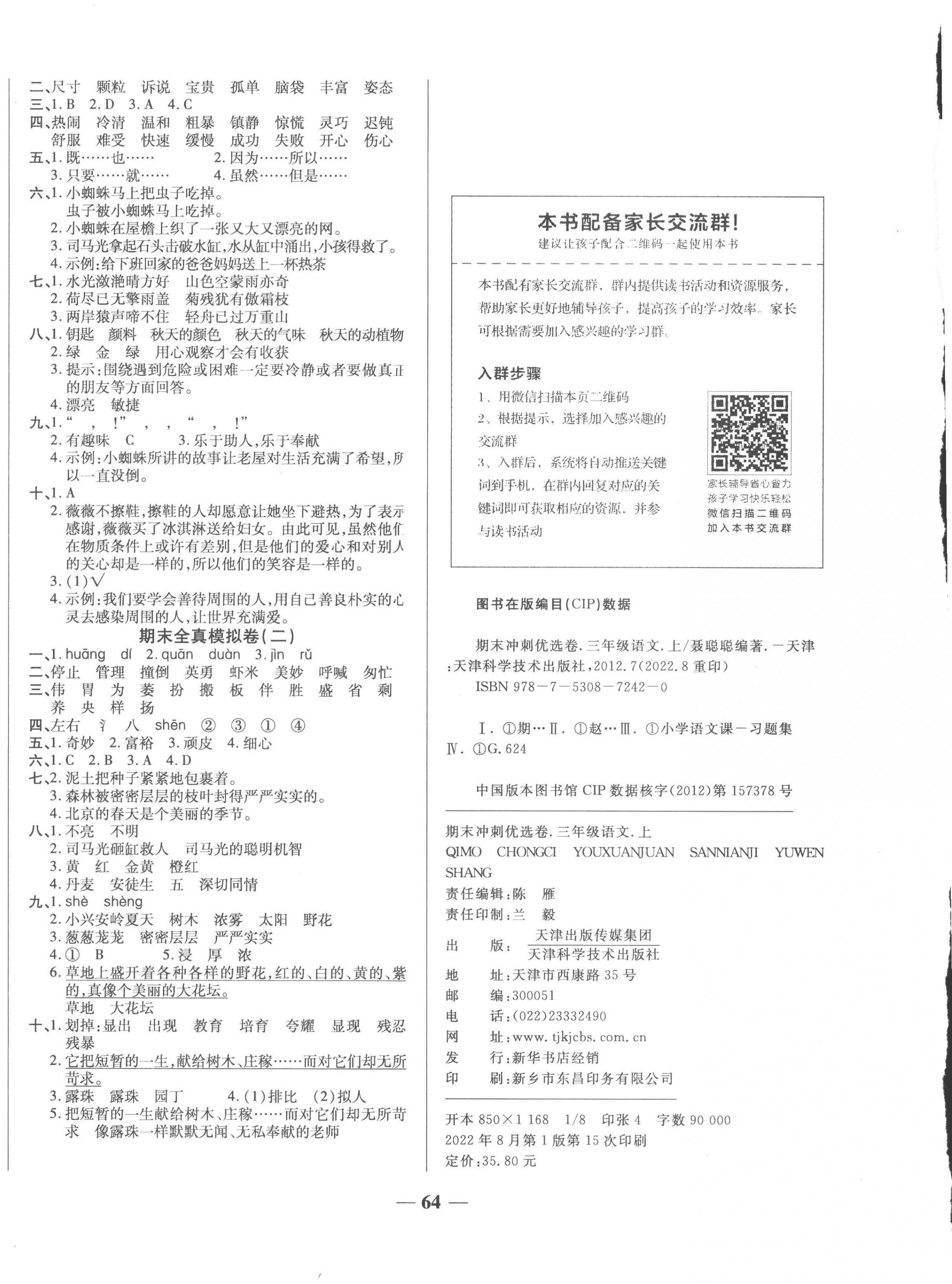 注:目前有些书本章节名称可能整理的还不是很完善,但都是按照顺序排列的,请同学们按照顺序仔细查找。练习册 2022年期末冲刺优选卷三年级语文上册人教版 答案主要是用来给同学们做完题方便对答案用的,请勿直接抄袭。