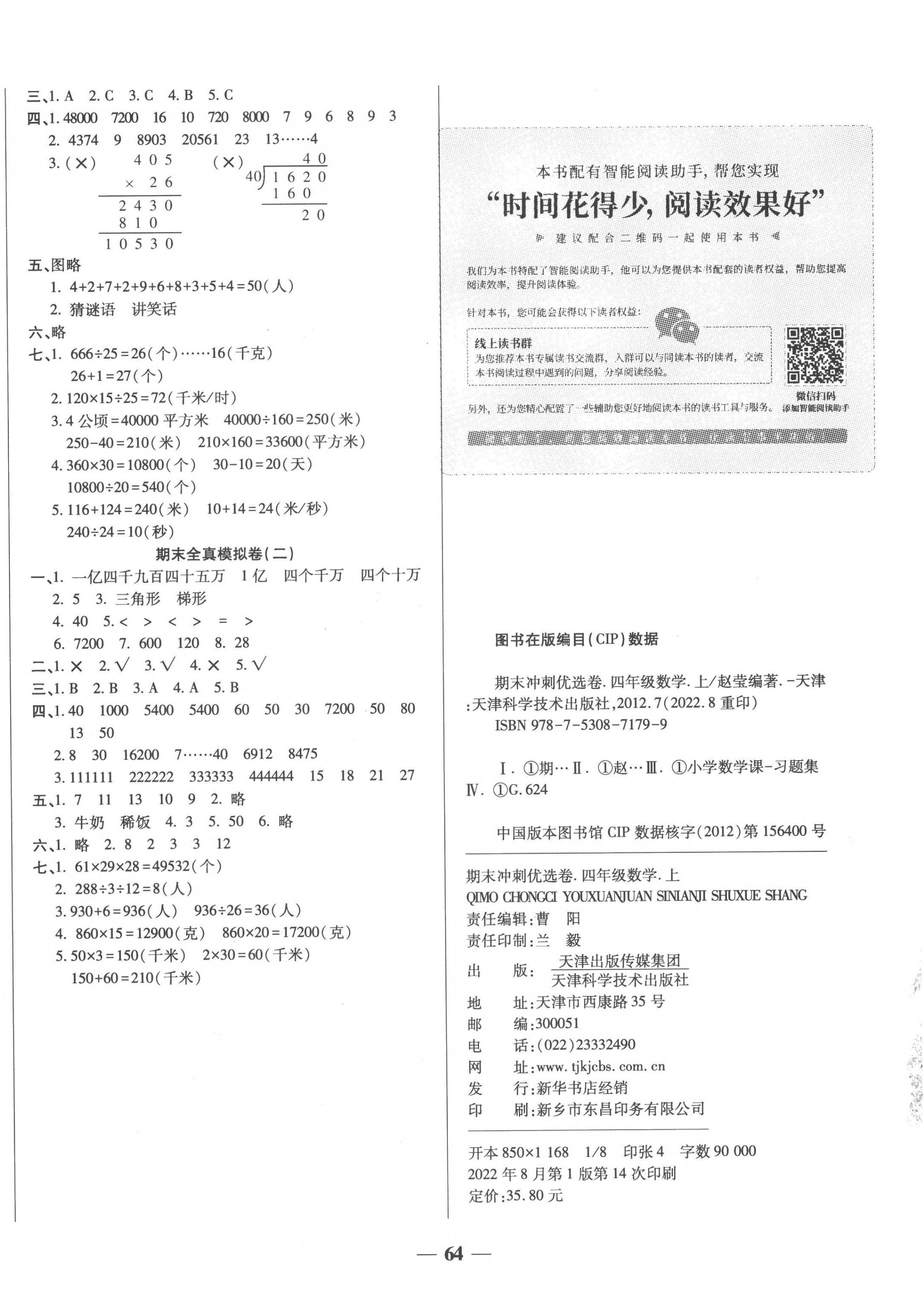 注:目前有些书本章节名称可能整理的还不是很完善,但都是按照顺序排列的,请同学们按照顺序仔细查找。练习册 2022年期末冲刺优选卷四年级数学上册人教版 答案主要是用来给同学们做完题方便对答案用的,请勿直接抄袭。
