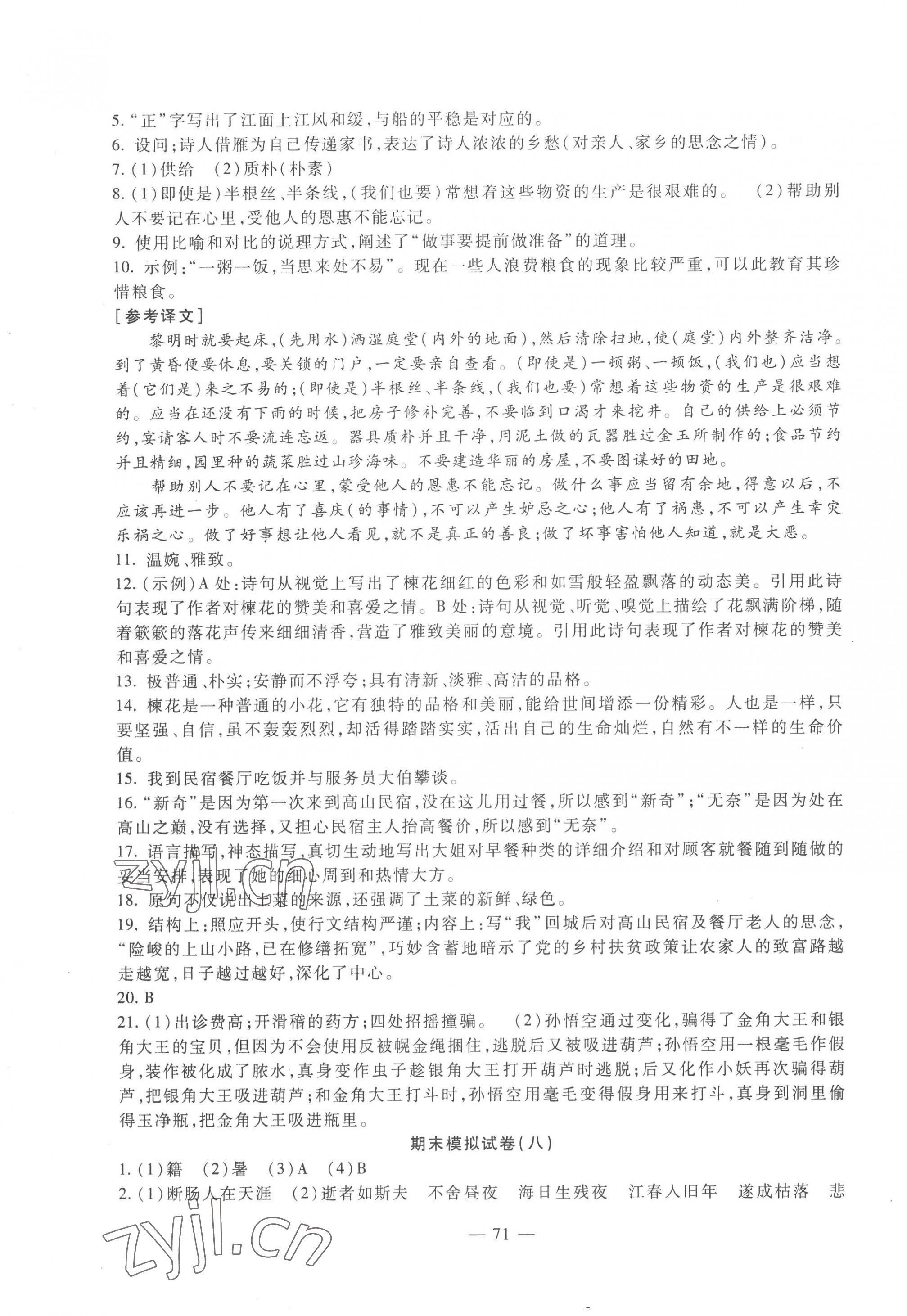 注:目前有些书本章节名称可能整理的还不是很完善,但都是按照顺序排列的,请同学们按照顺序仔细查找。练习册 2022年期末金卷夺冠8套七年级语文上册人教版河北专版 答案主要是用来给同学们做完题方便对答案用的,请勿直接抄袭。
