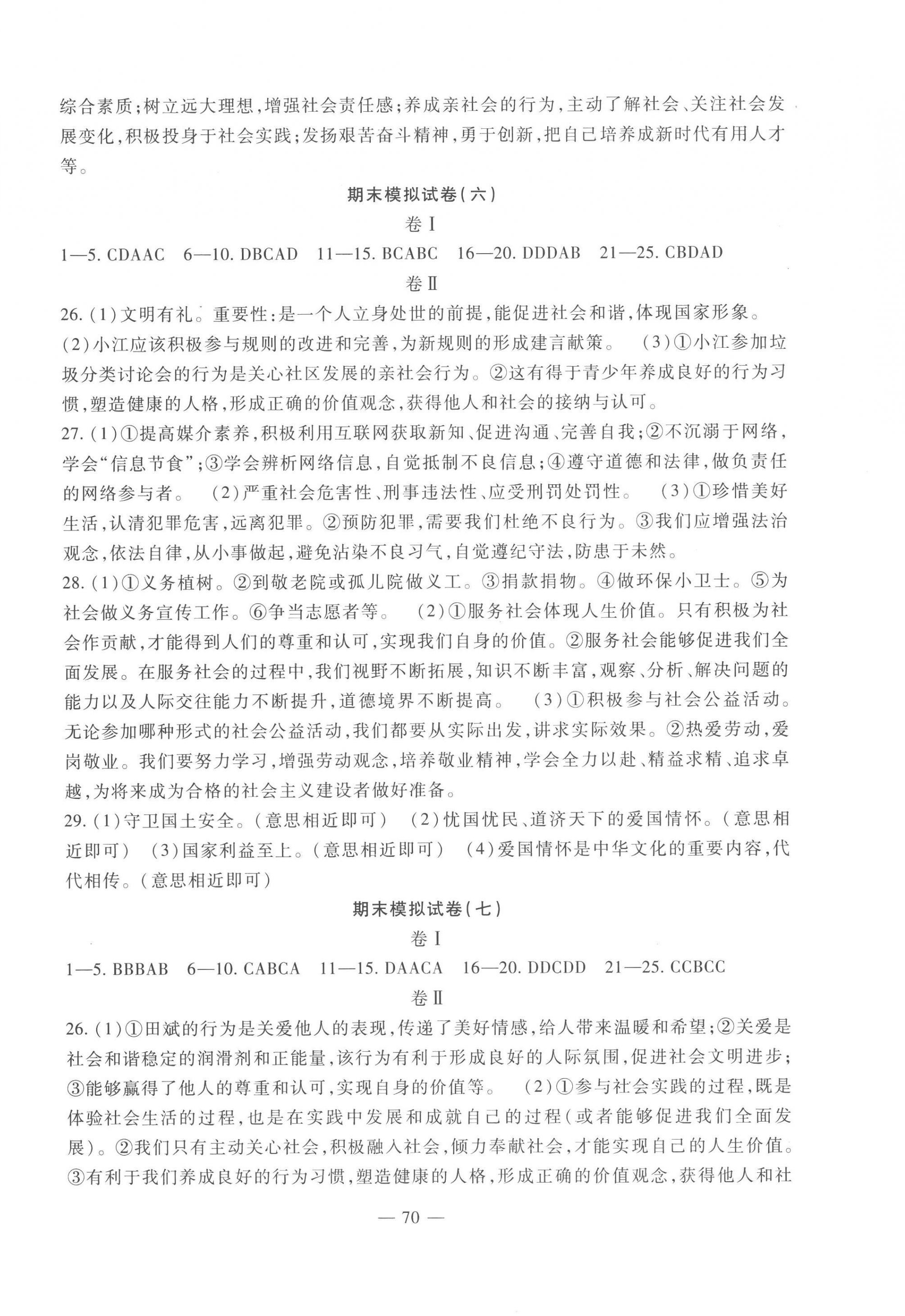 注:目前有些书本章节名称可能整理的还不是很完善,但都是按照顺序排列的,请同学们按照顺序仔细查找。练习册 2022年期末金卷夺冠8套八年级道德与法治上册人教版河北专版 答案主要是用来给同学们做完题方便对答案用的,请勿直接抄袭。