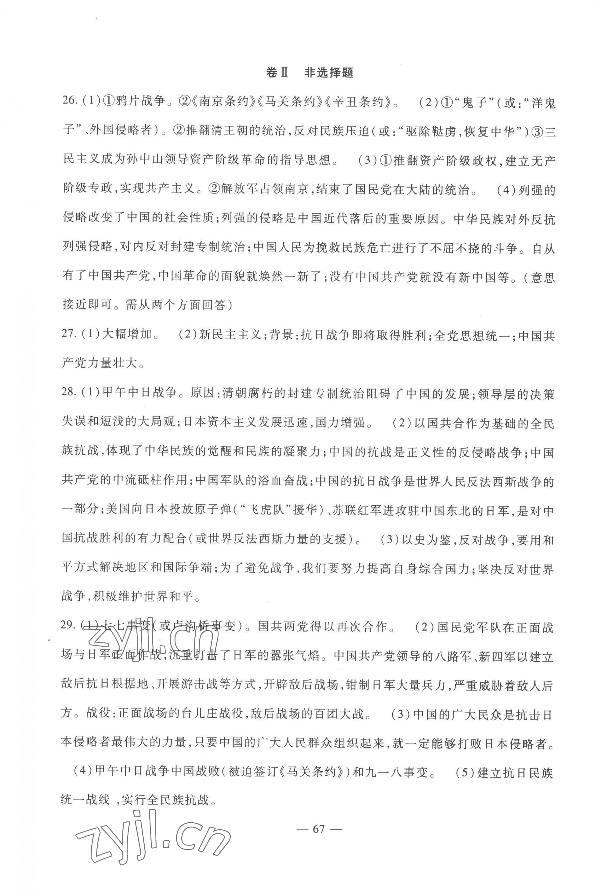 注:目前有些书本章节名称可能整理的还不是很完善,但都是按照顺序排列的,请同学们按照顺序仔细查找。练习册 2022年期末金卷夺冠8套八年级历史上册人教版河北专版 答案主要是用来给同学们做完题方便对答案用的,请勿直接抄袭。