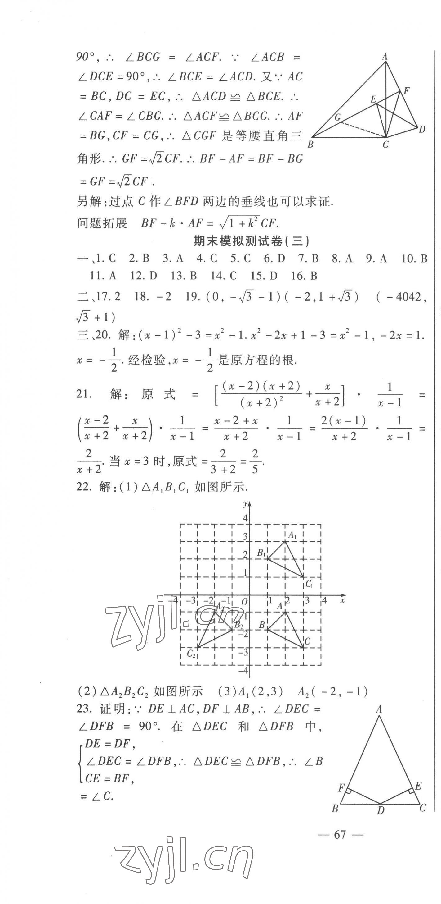 注:目前有些书本章节名称可能整理的还不是很完善,但都是按照顺序排列的,请同学们按照顺序仔细查找。练习册 2022年期末金卷夺冠8套八年级数学上册冀教版河北专版 答案主要是用来给同学们做完题方便对答案用的,请勿直接抄袭。