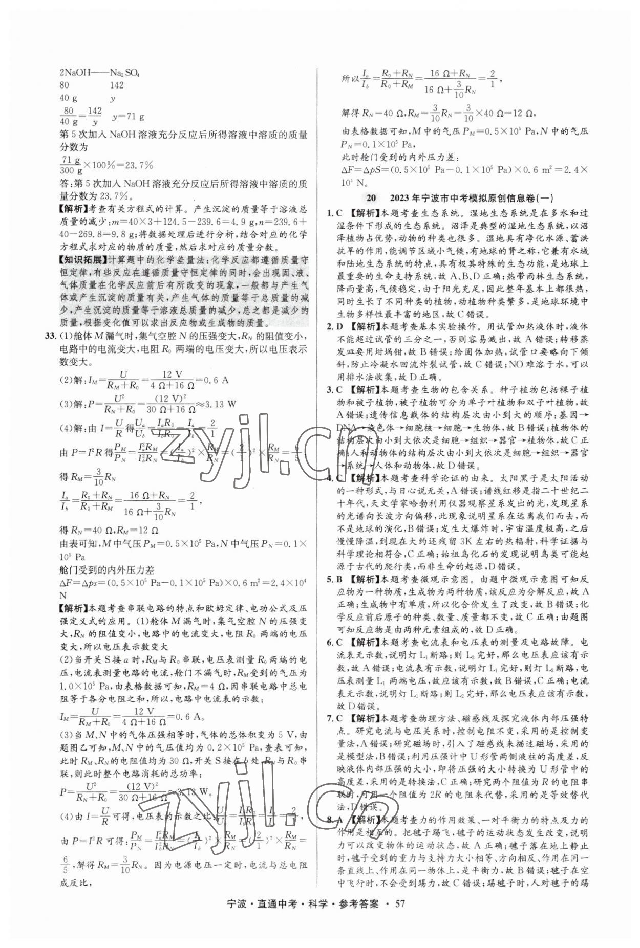注:目前有些书本章节名称可能整理的还不是很完善,但都是按照顺序排列的,请同学们按照顺序仔细查找。练习册 2023年直通中考中考试题精编九年级科学宁波专版 答案主要是用来给同学们做完题方便对答案用的,请勿直接抄袭。