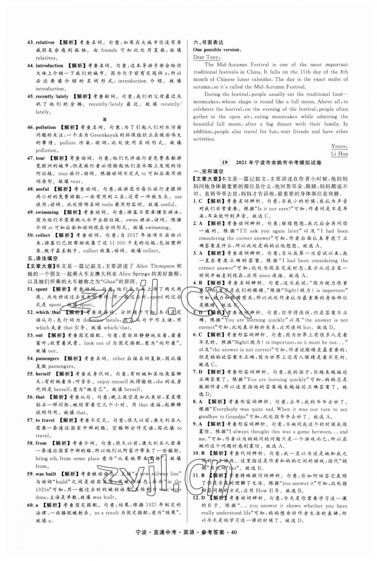 注:目前有些书本章节名称可能整理的还不是很完善,但都是按照顺序排列的,请同学们按照顺序仔细查找。练习册 2023年直通中考中考试题精编九年级英语宁波专版 答案主要是用来给同学们做完题方便对答案用的,请勿直接抄袭。
