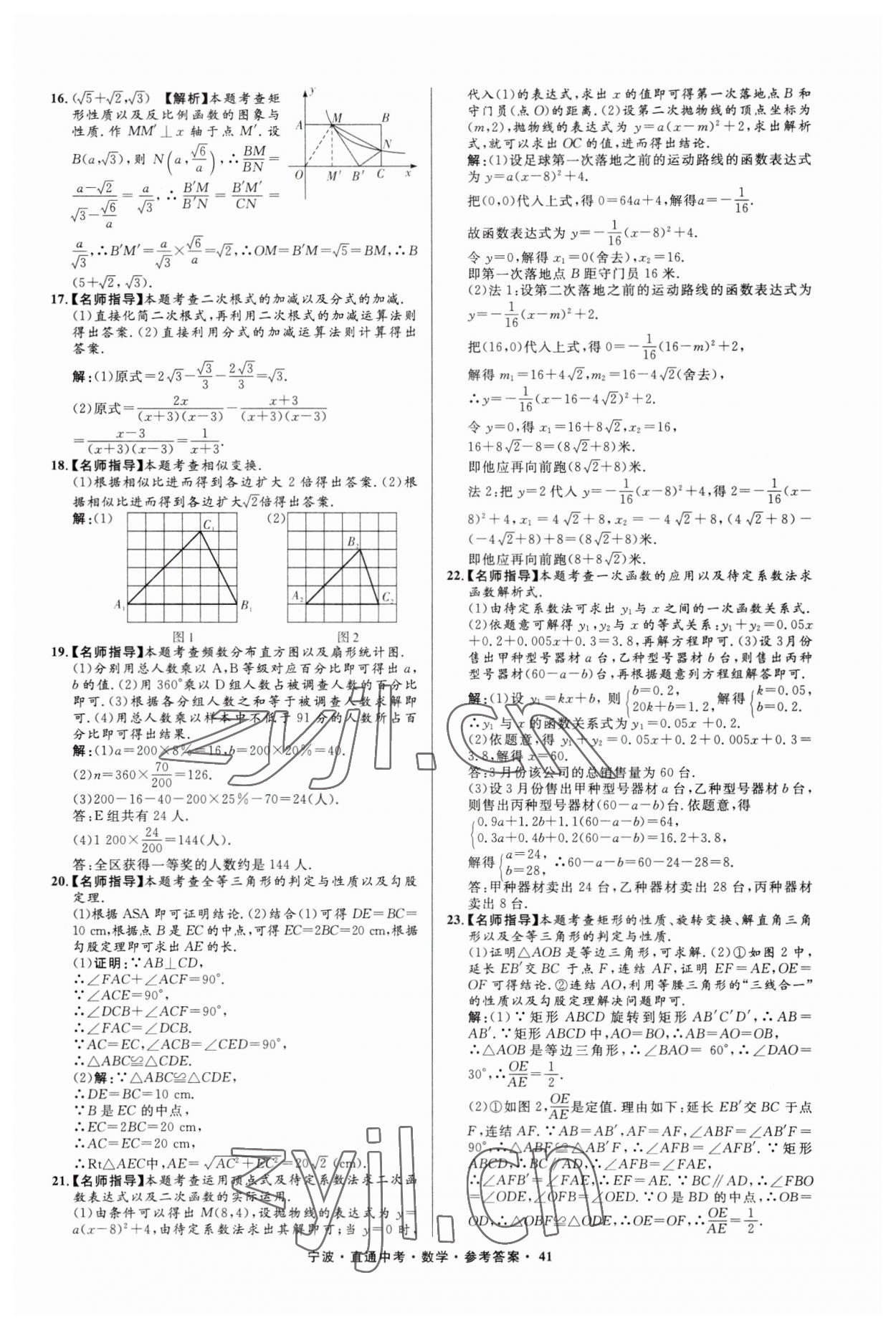 注:目前有些书本章节名称可能整理的还不是很完善,但都是按照顺序排列的,请同学们按照顺序仔细查找。练习册 2023年直通中考中考试题精编九年级数学宁波专版 答案主要是用来给同学们做完题方便对答案用的,请勿直接抄袭。