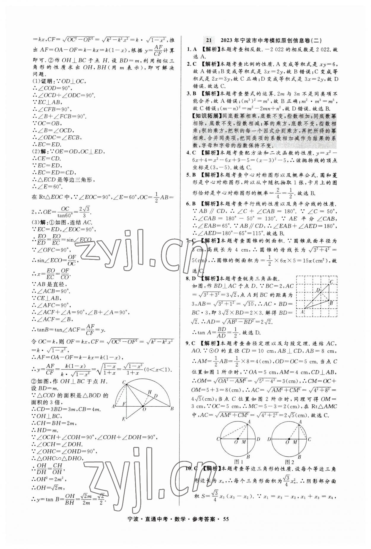 注:目前有些书本章节名称可能整理的还不是很完善,但都是按照顺序排列的,请同学们按照顺序仔细查找。练习册 2023年直通中考中考试题精编九年级数学宁波专版 答案主要是用来给同学们做完题方便对答案用的,请勿直接抄袭。