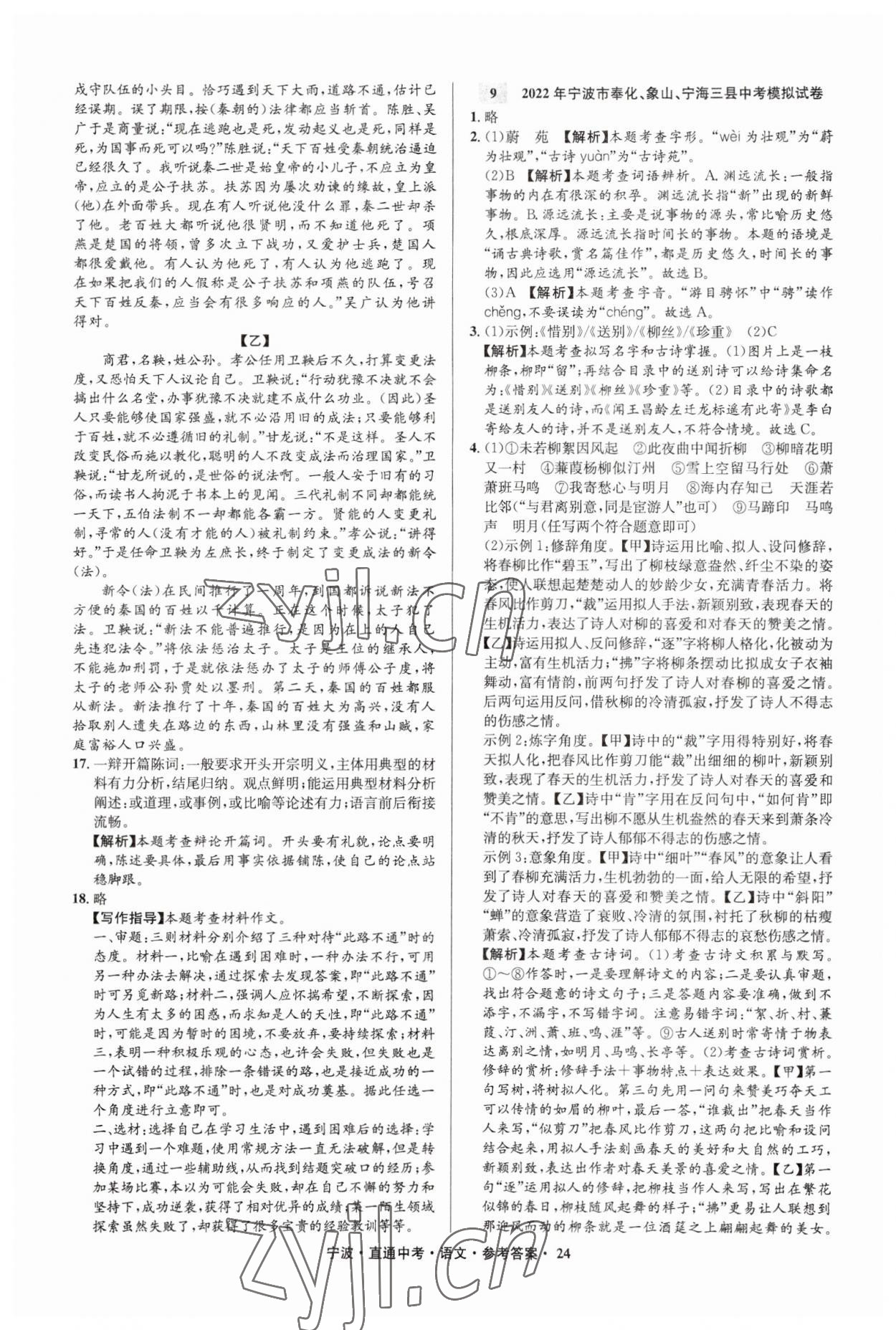 2023年直通中考中考试题精编九年级语文宁波专版