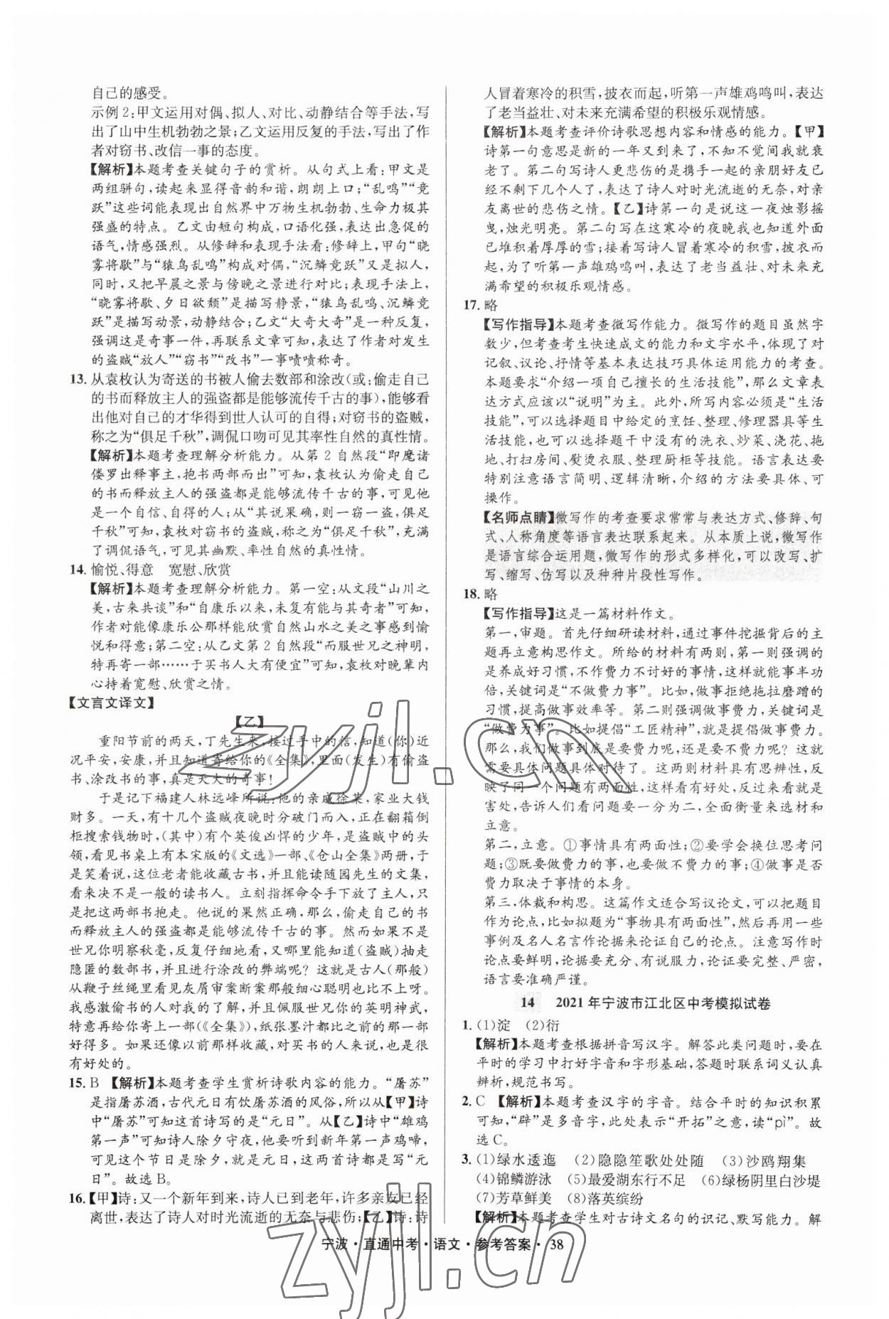 2023年直通中考中考试题精编九年级语文宁波专版