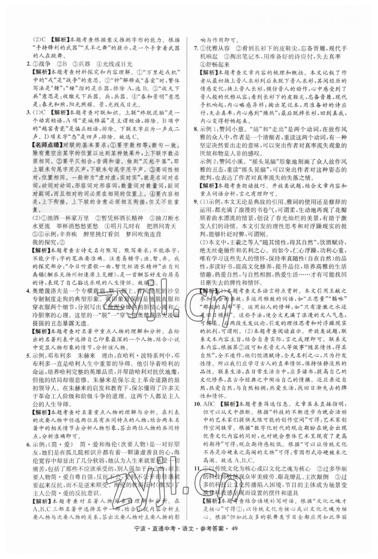 2023年直通中考中考试题精编九年级语文宁波专版