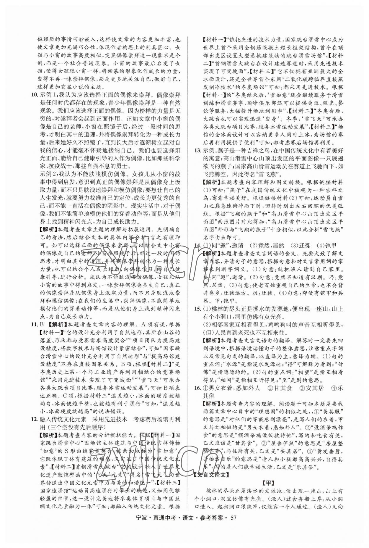 2023年直通中考中考试题精编九年级语文宁波专版