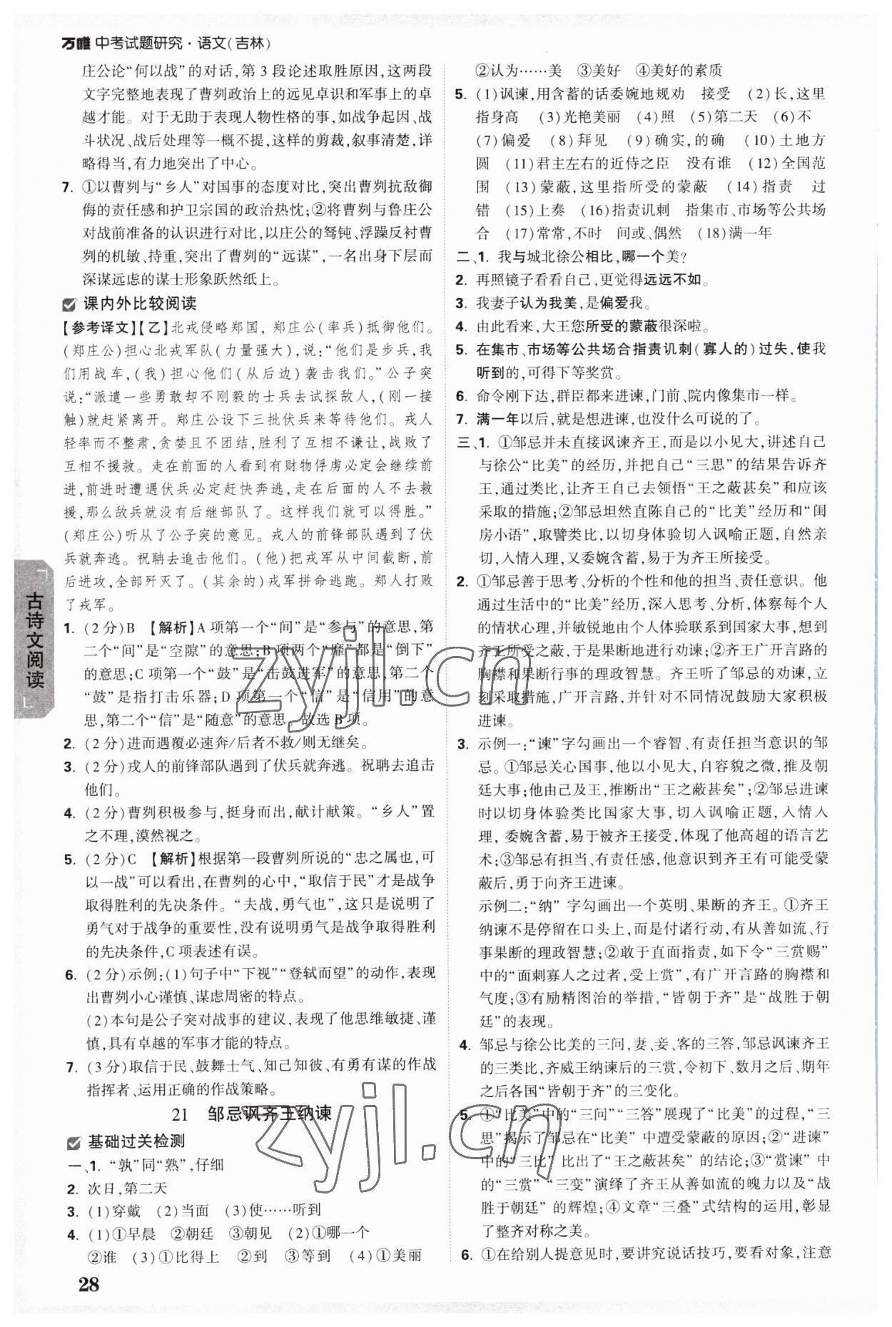 2023年万唯中考试题研究语文吉林专版
