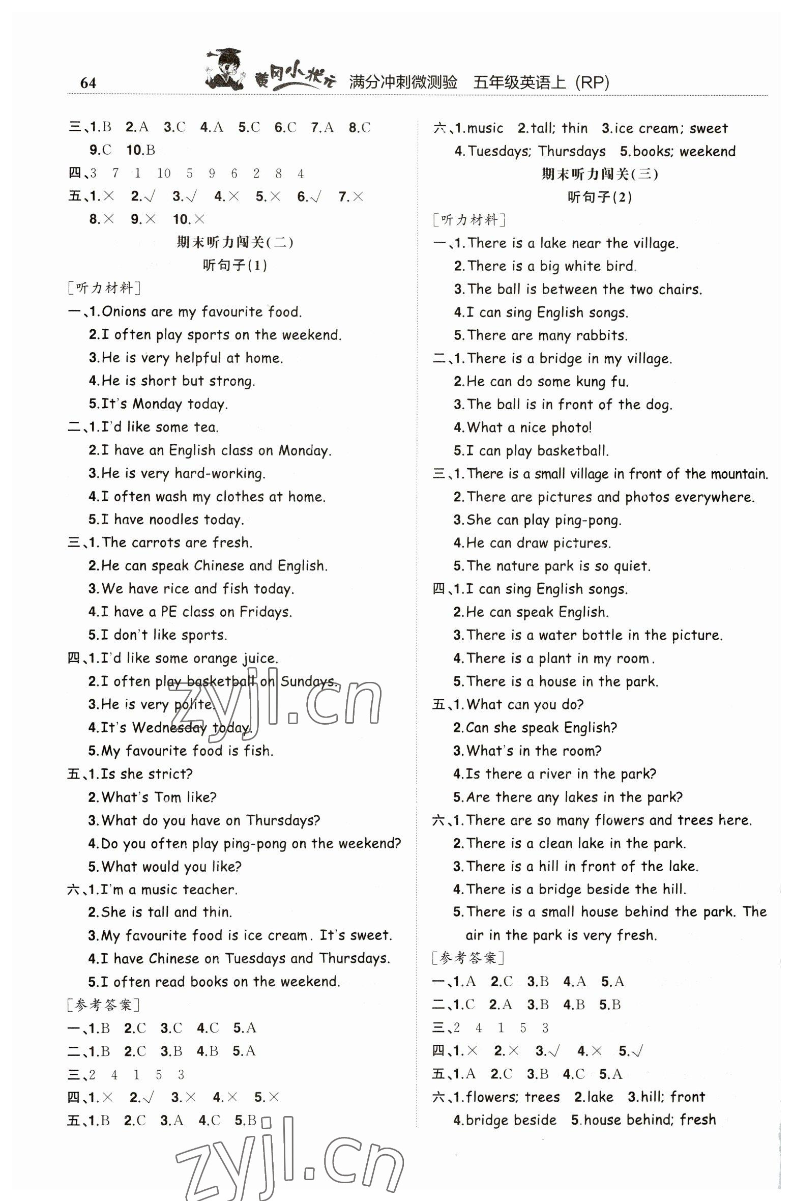 注:目前有些书本章节名称可能整理的还不是很完善,但都是按照顺序排列的,请同学们按照顺序仔细查找。练习册 2022年黄冈小状元满分冲刺微测验五年级英语上册人教版 答案主要是用来给同学们做完题方便对答案用的,请勿直接抄袭。