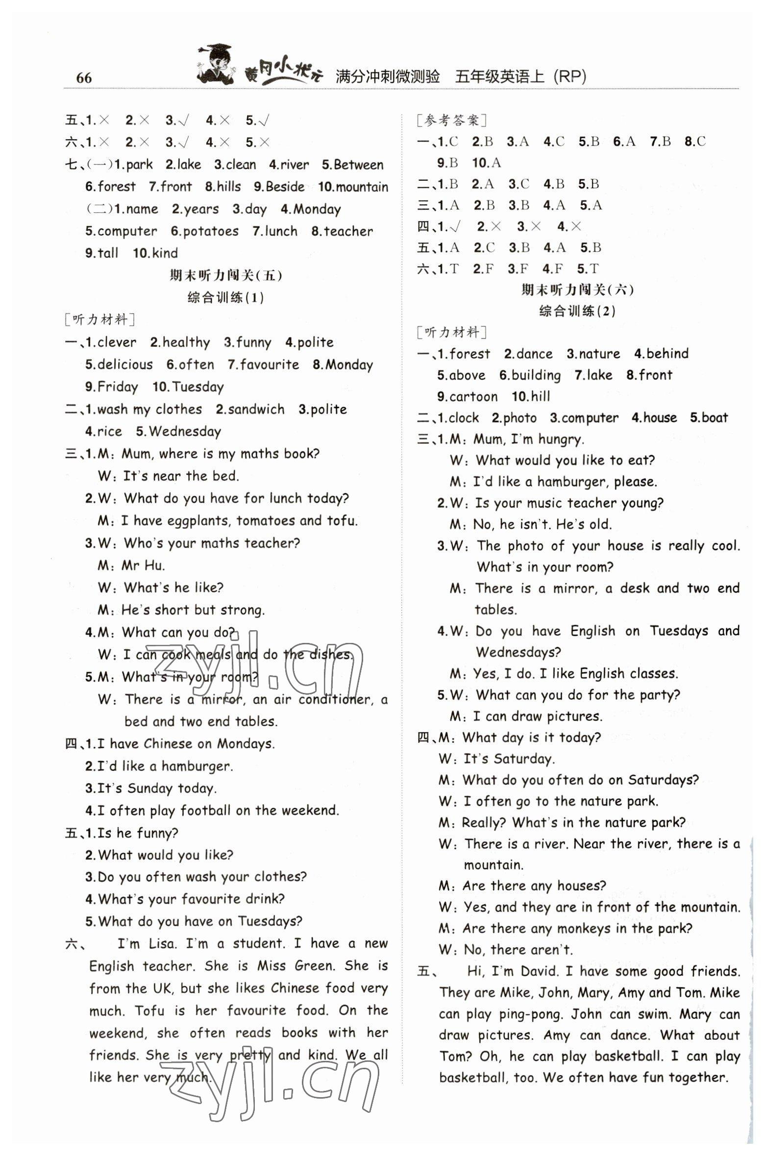 注:目前有些书本章节名称可能整理的还不是很完善,但都是按照顺序排列的,请同学们按照顺序仔细查找。练习册 2022年黄冈小状元满分冲刺微测验五年级英语上册人教版 答案主要是用来给同学们做完题方便对答案用的,请勿直接抄袭。