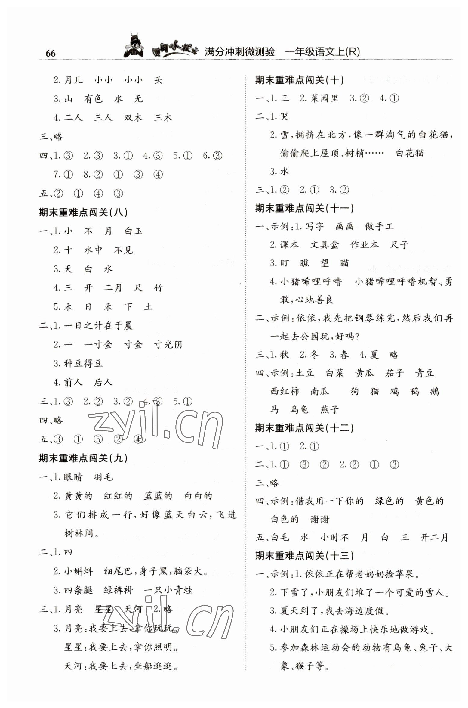 注:目前有些书本章节名称可能整理的还不是很完善,但都是按照顺序排列的,请同学们按照顺序仔细查找。练习册 2022年黄冈小状元满分冲刺微测验一年级语文上册人教版 答案主要是用来给同学们做完题方便对答案用的,请勿直接抄袭。