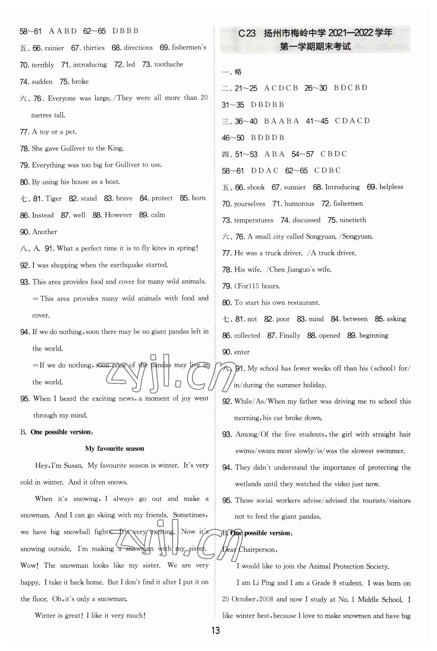 注:目前有些书本章节名称可能整理的还不是很完善,但都是按照顺序排列的,请同学们按照顺序仔细查找。练习册 2022年期末闯关制胜金卷八年级英语上册译林版 答案主要是用来给同学们做完题方便对答案用的,请勿直接抄袭。