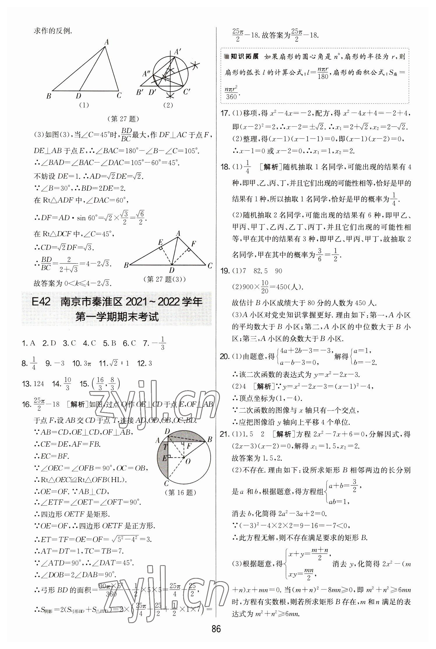 注:目前有些书本章节名称可能整理的还不是很完善,但都是按照顺序排列的,请同学们按照顺序仔细查找。练习册 2022年期末闯关制胜金卷九年级数学全一册苏科版 答案主要是用来给同学们做完题方便对答案用的,请勿直接抄袭。