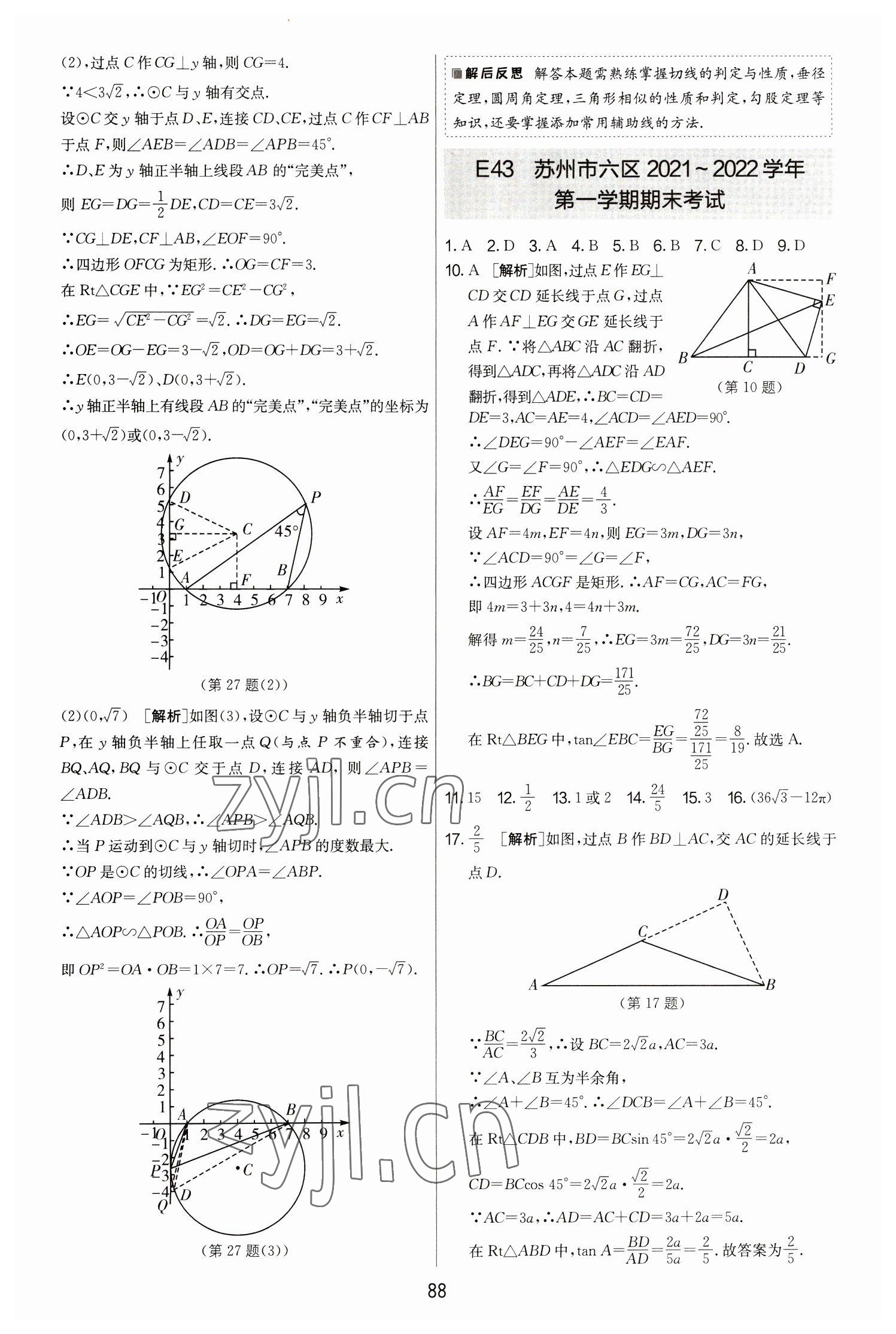 注:目前有些书本章节名称可能整理的还不是很完善,但都是按照顺序排列的,请同学们按照顺序仔细查找。练习册 2022年期末闯关制胜金卷九年级数学全一册苏科版 答案主要是用来给同学们做完题方便对答案用的,请勿直接抄袭。