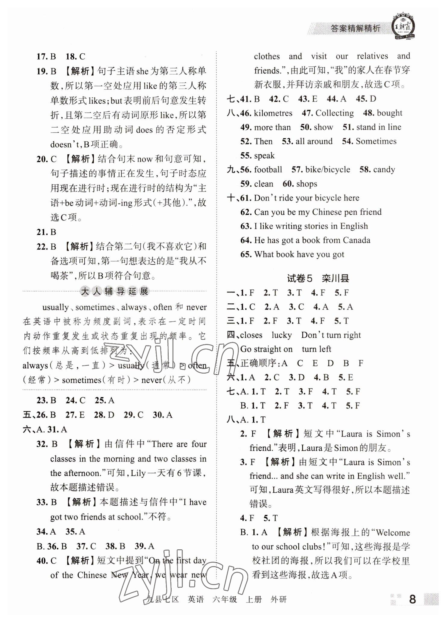 注:目前有些书本章节名称可能整理的还不是很完善,但都是按照顺序排列的,请同学们按照顺序仔细查找。练习册 2022年王朝霞各地期末试卷精选六年级英语上册外研版洛阳专版 答案主要是用来给同学们做完题方便对答案用的,请勿直接抄袭。